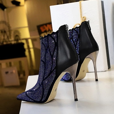 Fashion sexy banquet metal with stiletto super high heel pointed thin nightclub rhinestone ankle boots