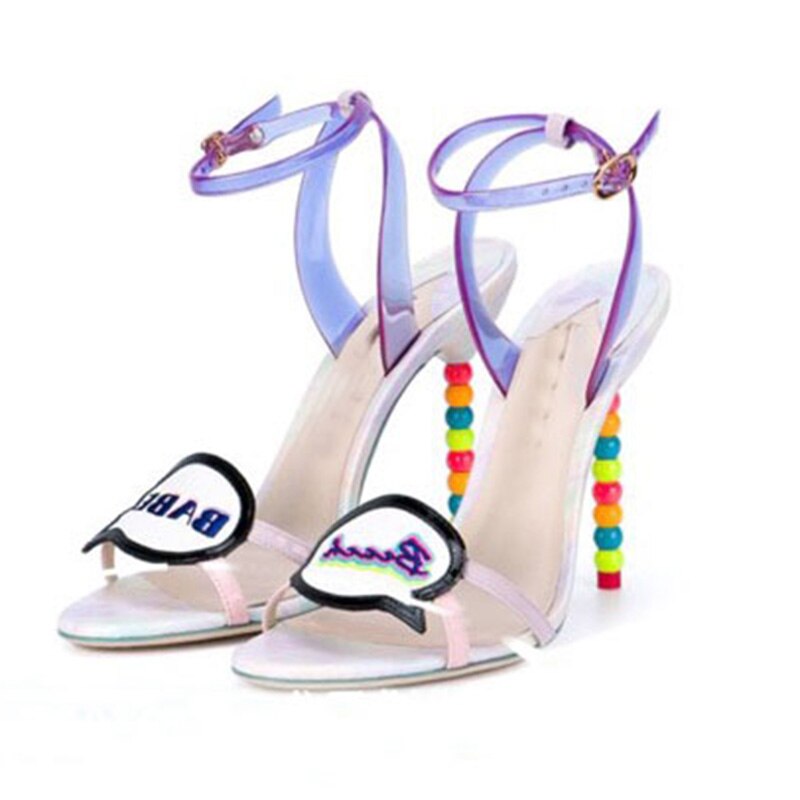 Genuine leather sandals women string beaded high heels striped catwalk T show letter decor gladiator shoes zapatos mujer