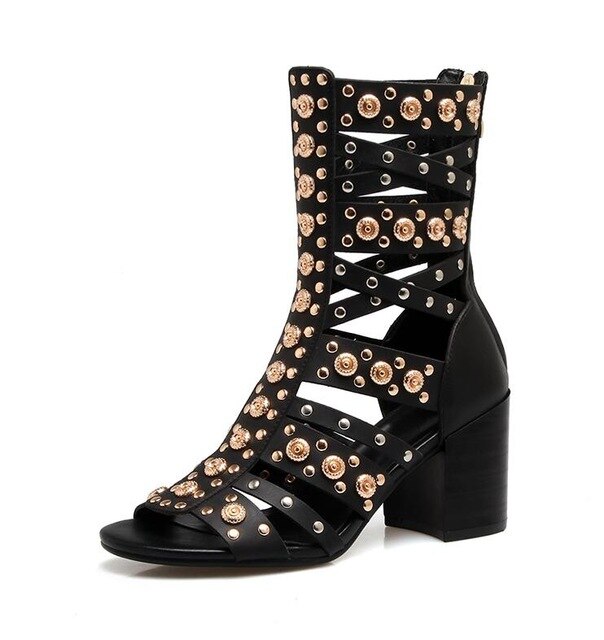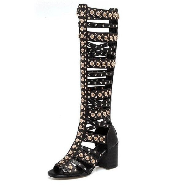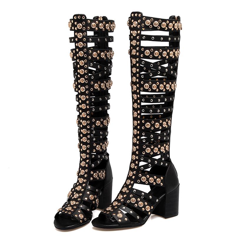 Latest Women Gladiator Sandals Fashion Rivet Summer Long Boots Open Toe Real Leather Hollowed out Designer Sandals