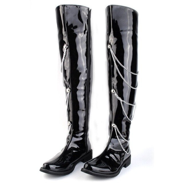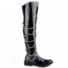New Rock Punk Style Stage PU Leather Chain Long Boots Men Fashion Black Over-The-Knee Motorcycle Boots Pointed Toe Shoes