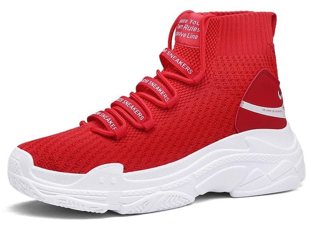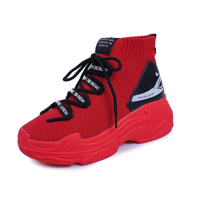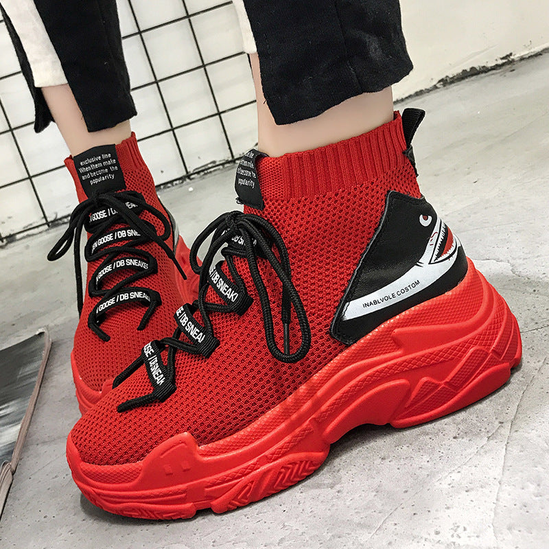Red Shark Sneakers Women Men High Top Breathable Flat Platform Shoes Women Casual Socks Shoes Chunky Sneakers Men And Women