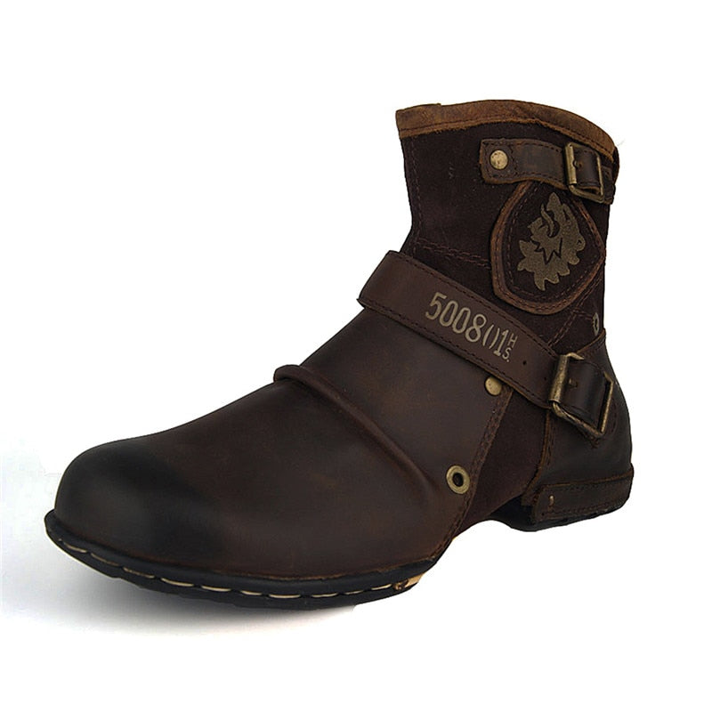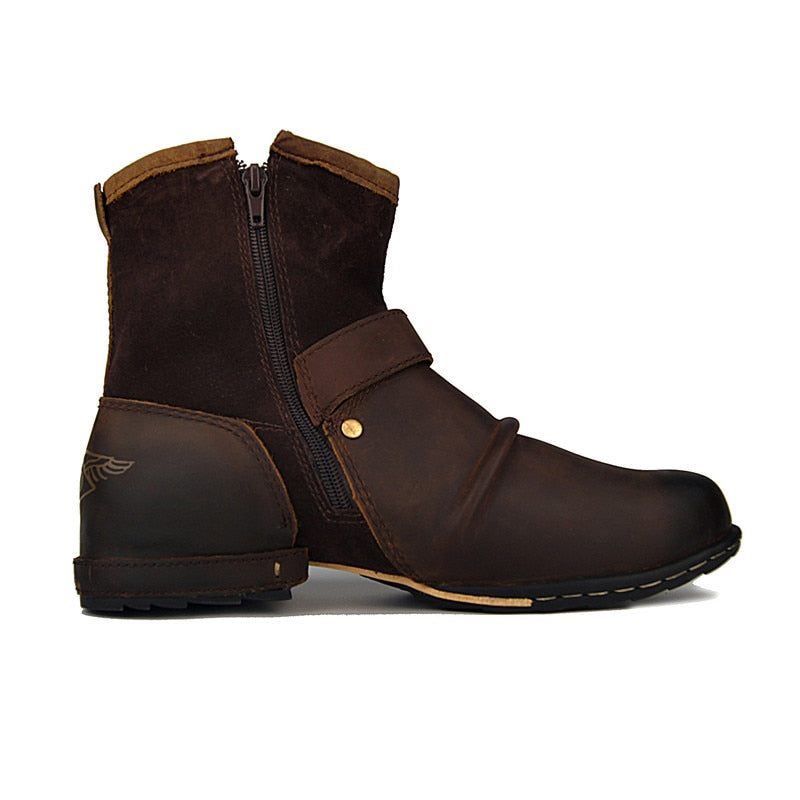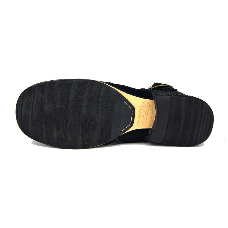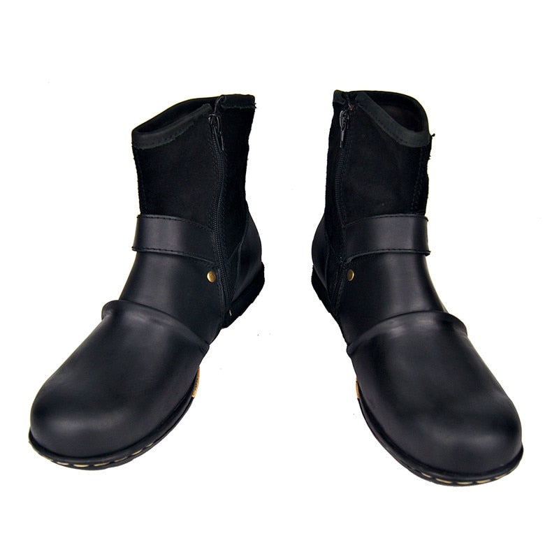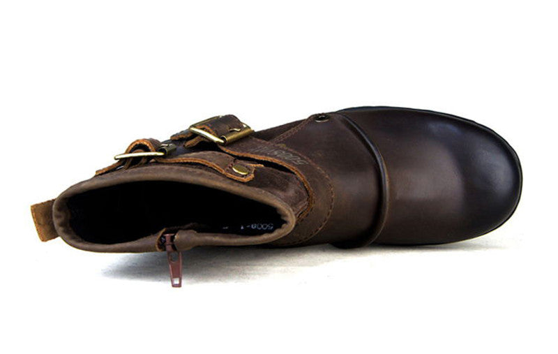 Retro genuine leather buckle strap wedge cowboy Boots handmade big toe knight embroidery cowhide Boots