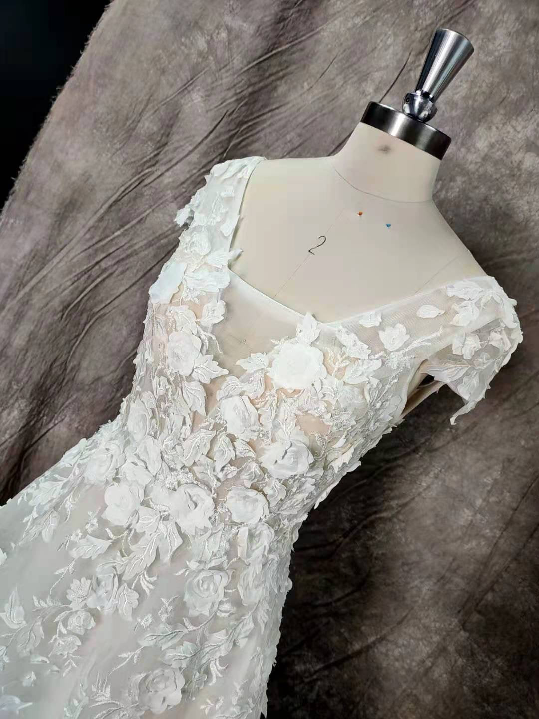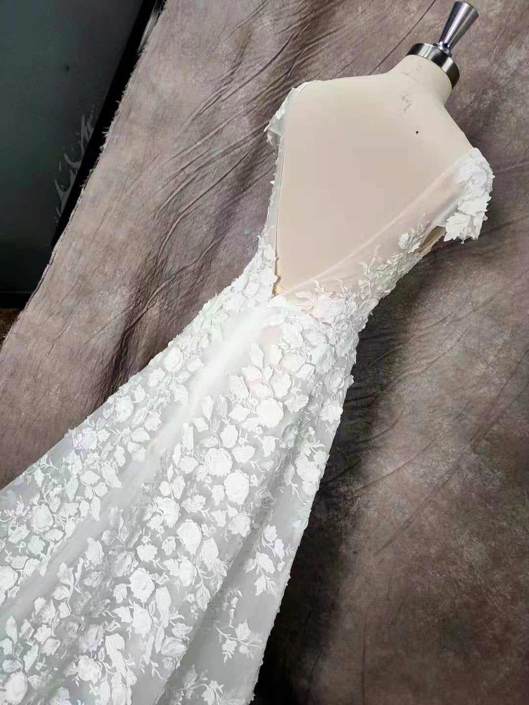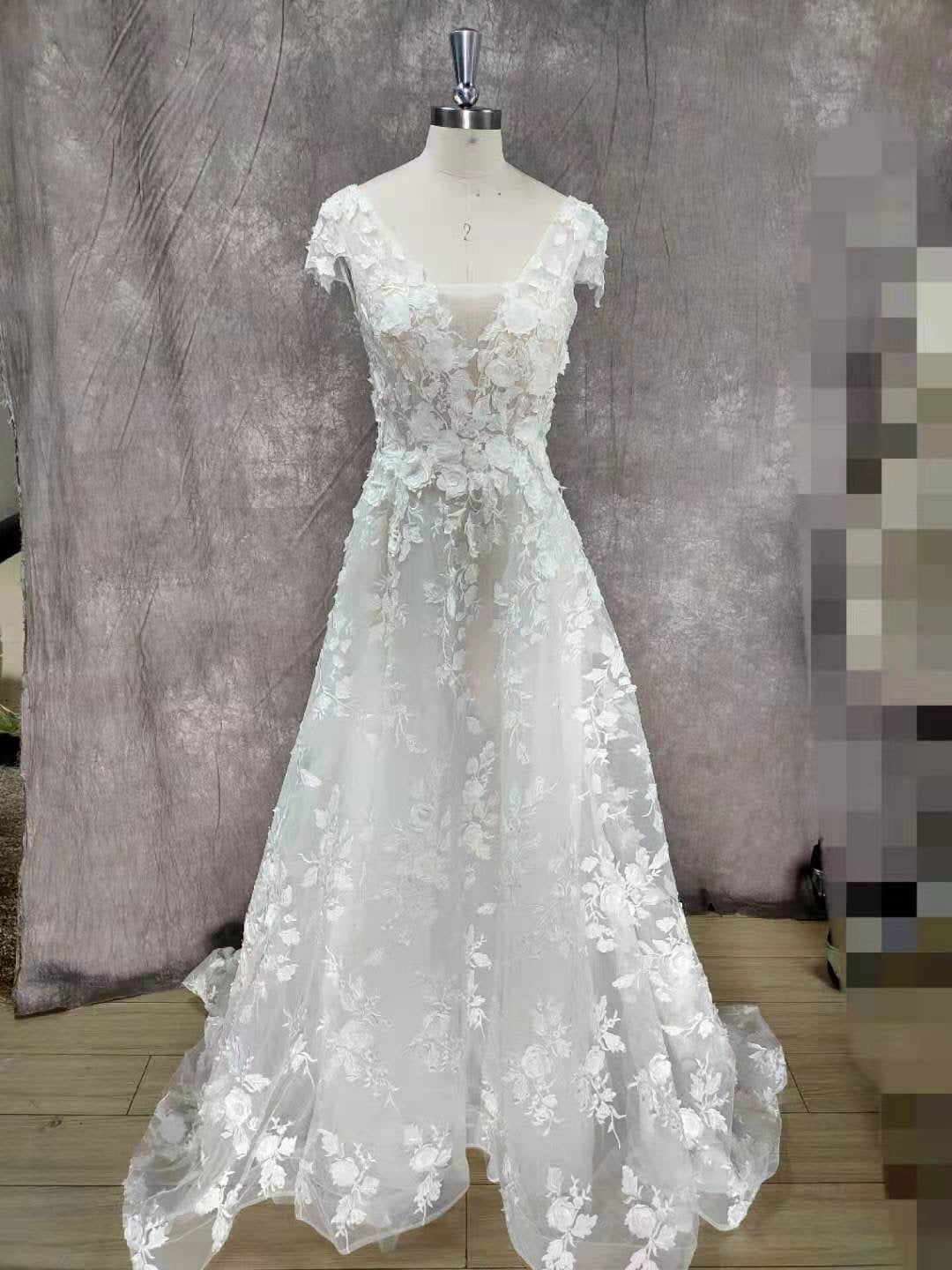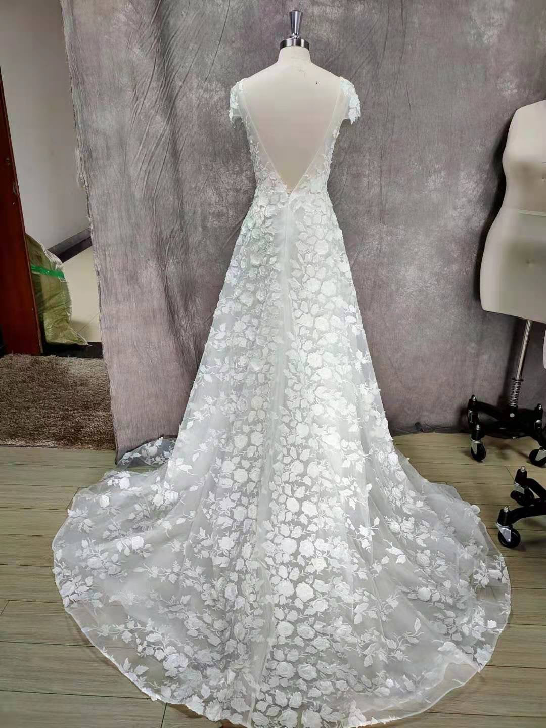 Sexy Bohemian Wedding Dress Short Sleeves Deep V Neck 3d Floral Appliques Bridal Gowns Backless Vestido De Noiva Lorie