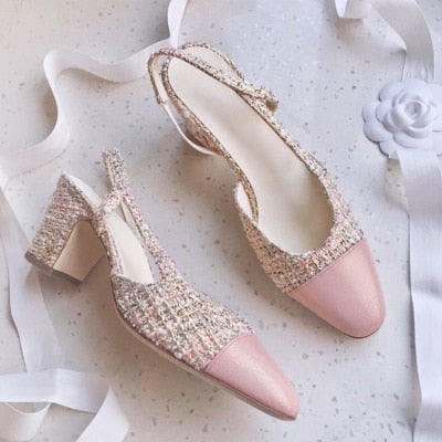 Summer Casual Pink Sandals Round Toe Ankle Strap Thick Heel Shoes Woman Slingbacks Party Wedding Lady High Heel Sandals
