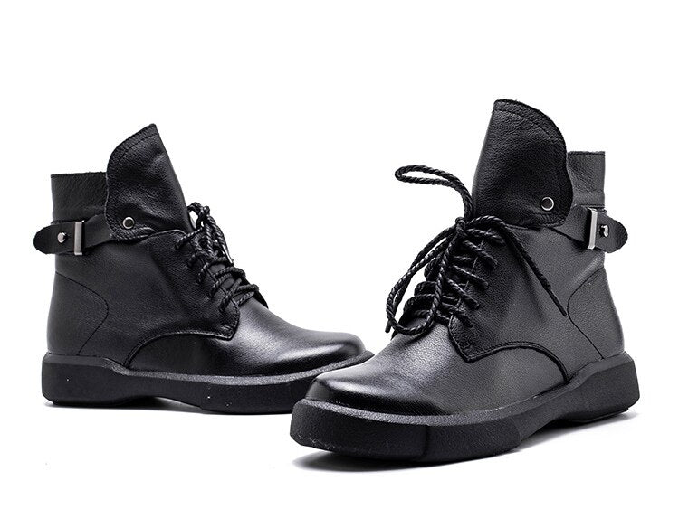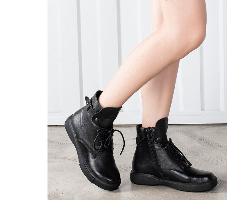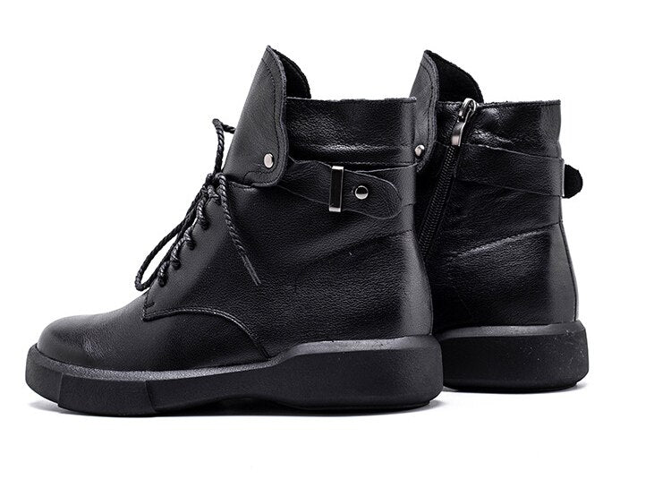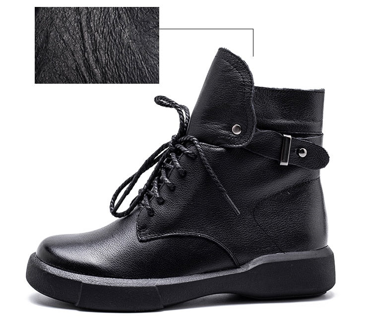 Women Ankle Boots Genuine Leather Short Plush Warm Ladies Short Booties Motorcycle Boots Woman Black Fashion Shoes