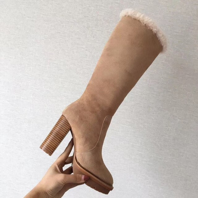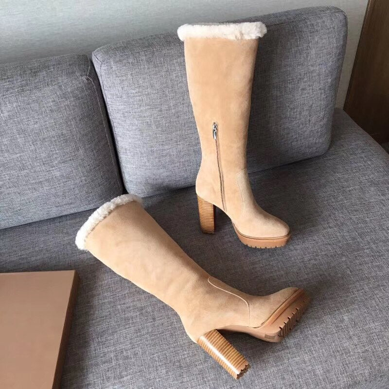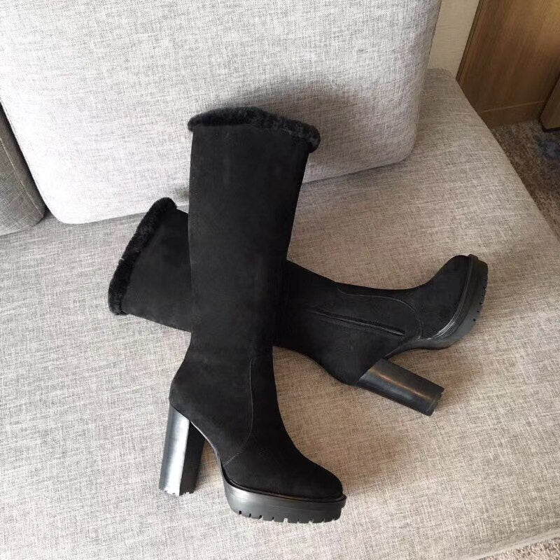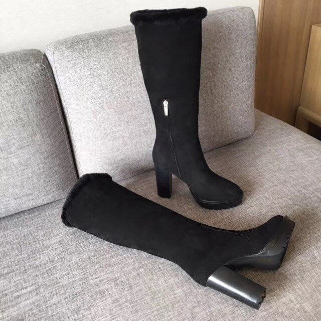 woman ladies water platform high suede leather knee boots long winter snow boots