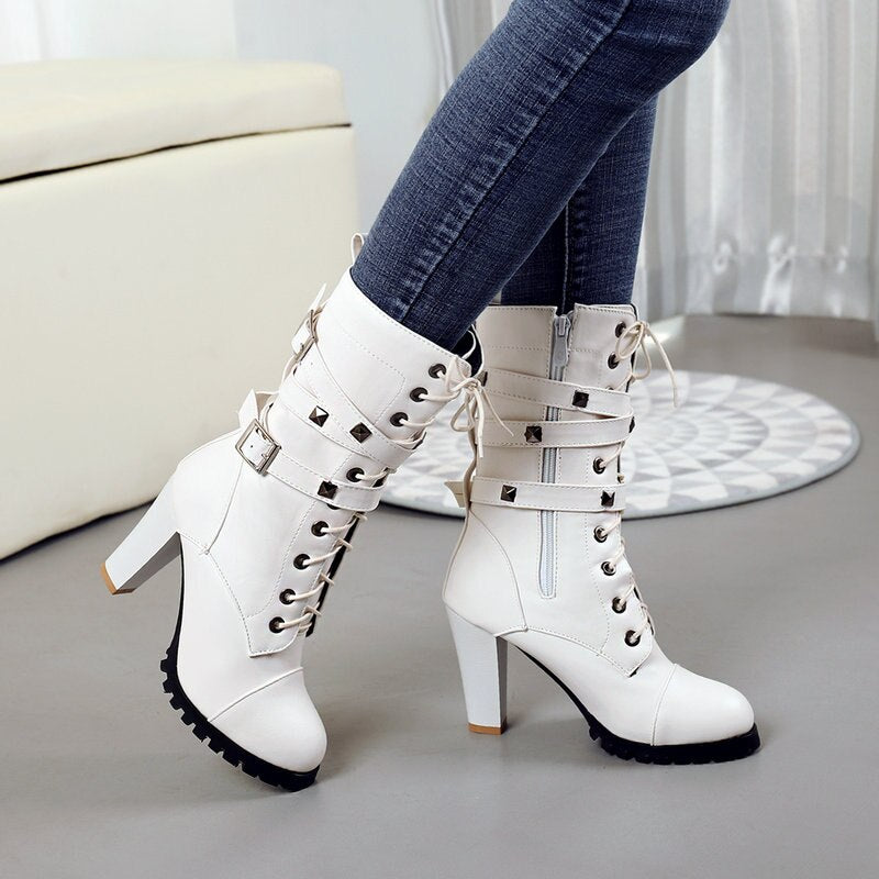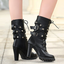 Women Boots Fashion Rivet Motorcycle Boots Autumn Mid Calf Boots