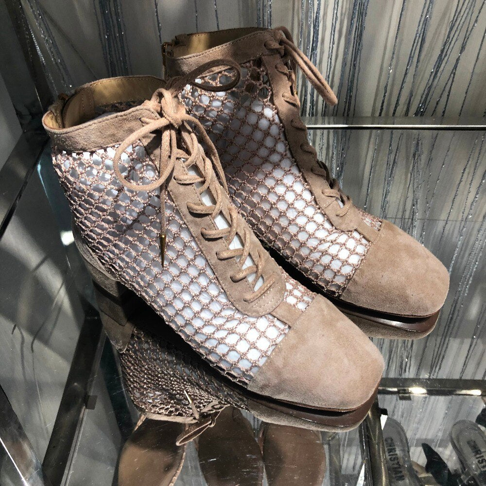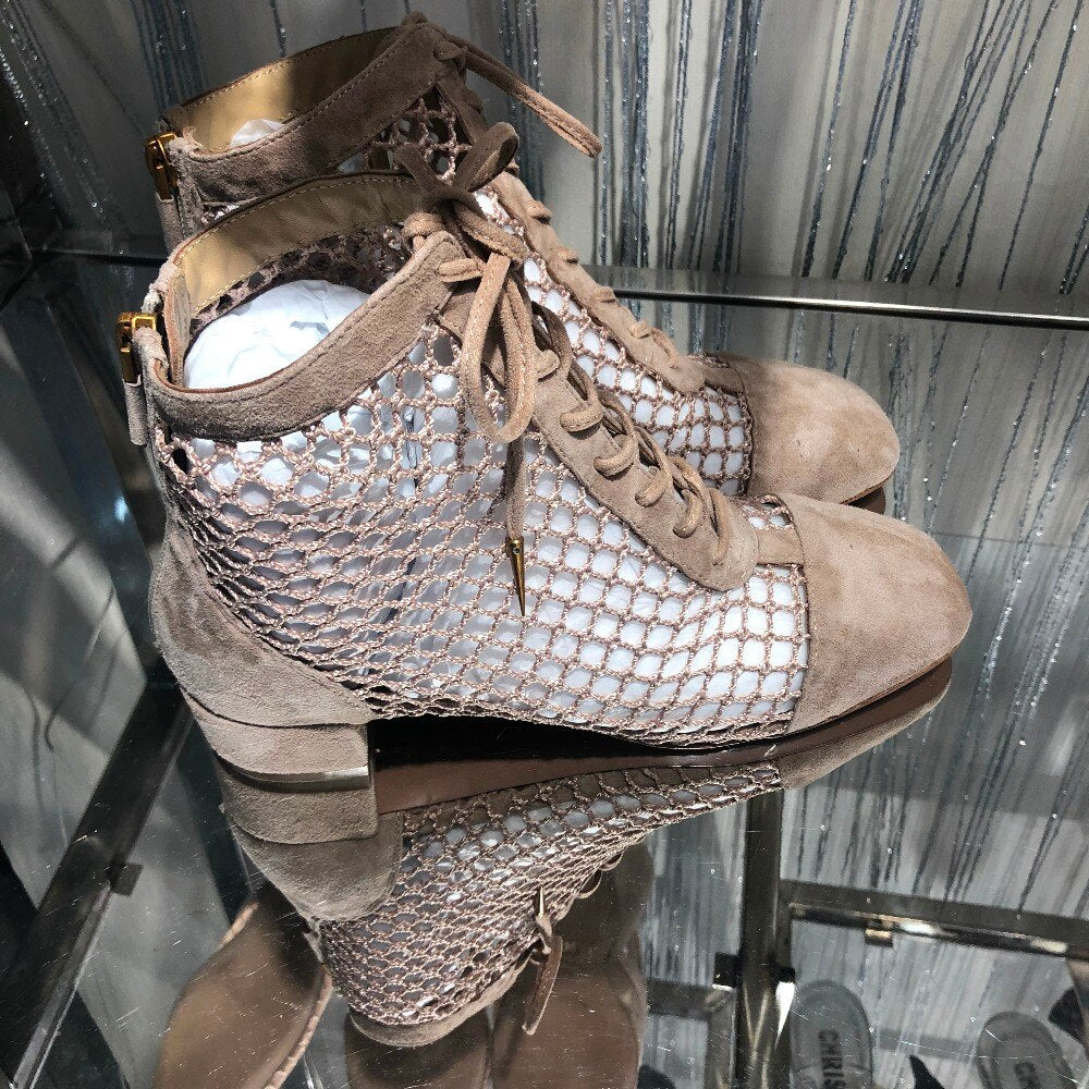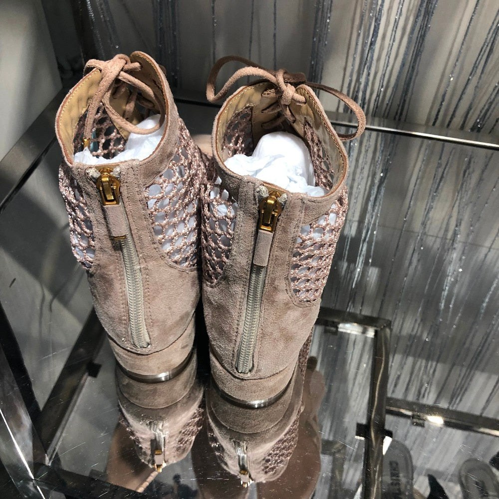 women ladies knitted suede leather sandals flat heel shoes boots