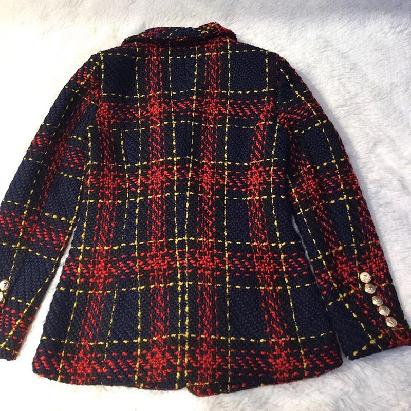 Plaid Knitting Weaving Full Sleeve Polyester Coat