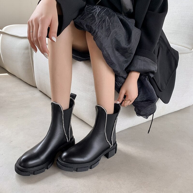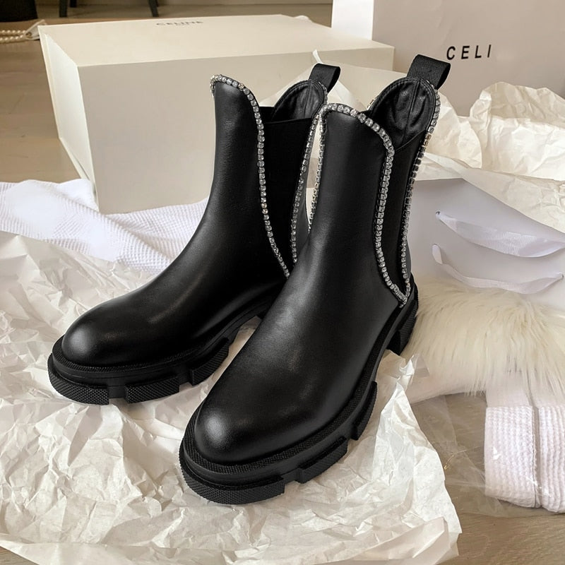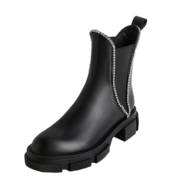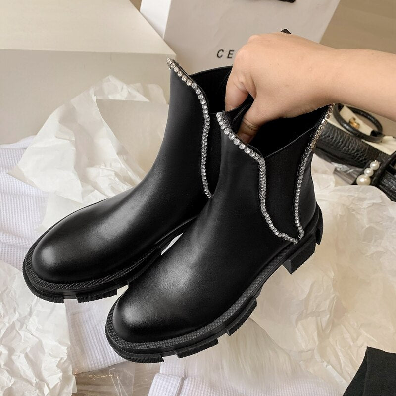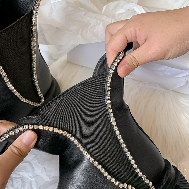 Women Round Toe Crystal Fashion Riding Boots