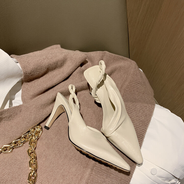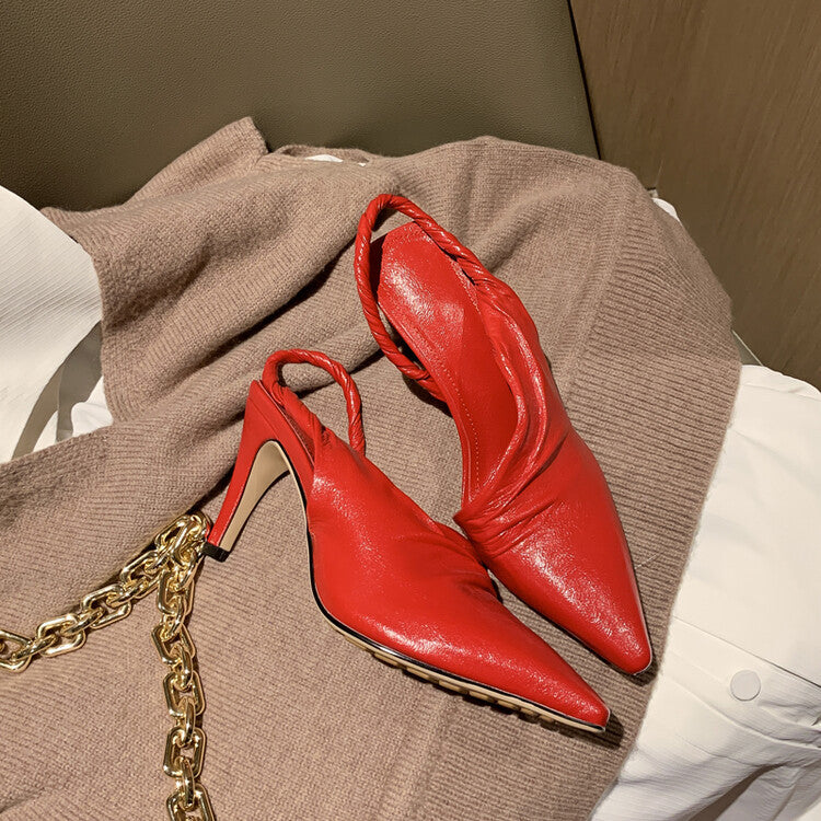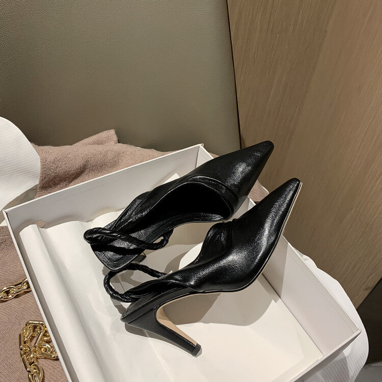 Buckle Design Fashion Shallow Leather Slingback Sandals Women