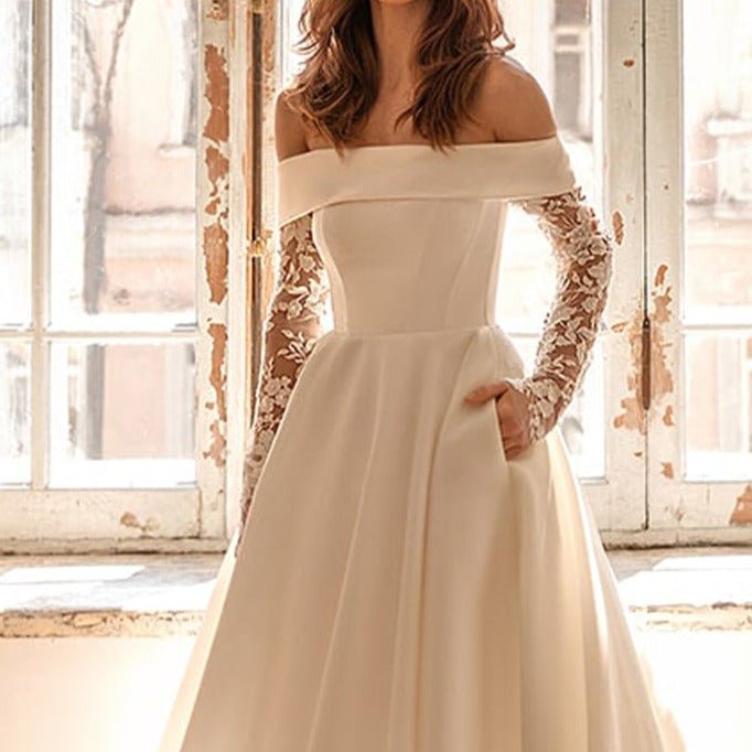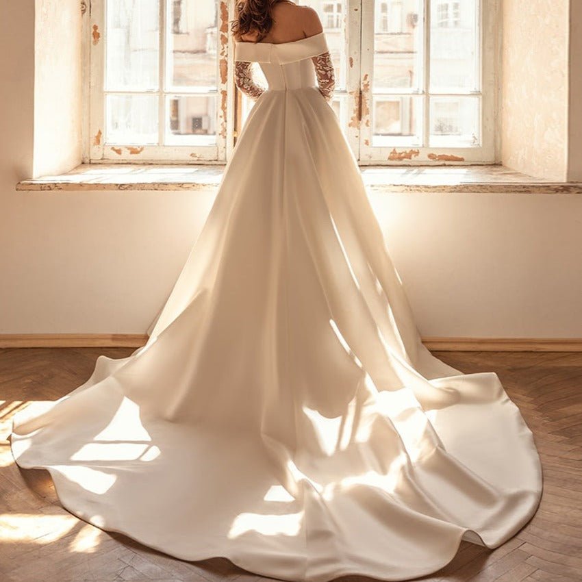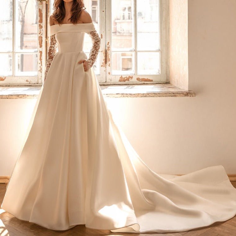 Long Sleeve Lace Elegant Satin Tube Top Long Trailing Simple Wedding Dress