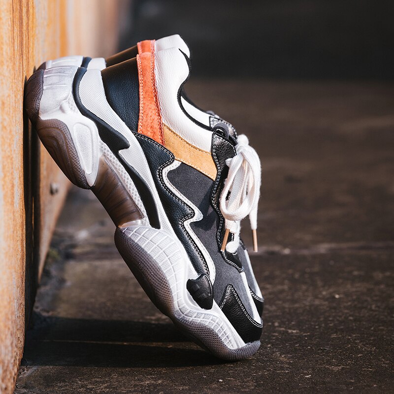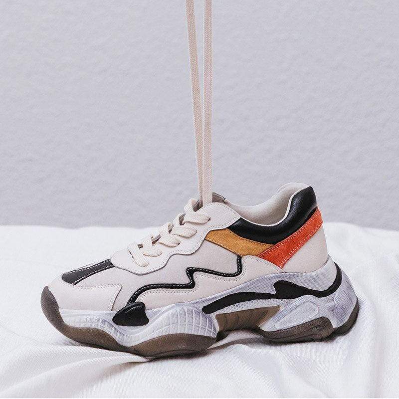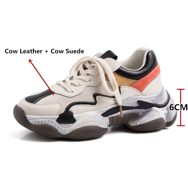 Corss-Tied Women Sneakers Cow Leather Shoes Woman Platform Chunky Sneakers Ladies Trainers Zapatillas Chunky Mujer