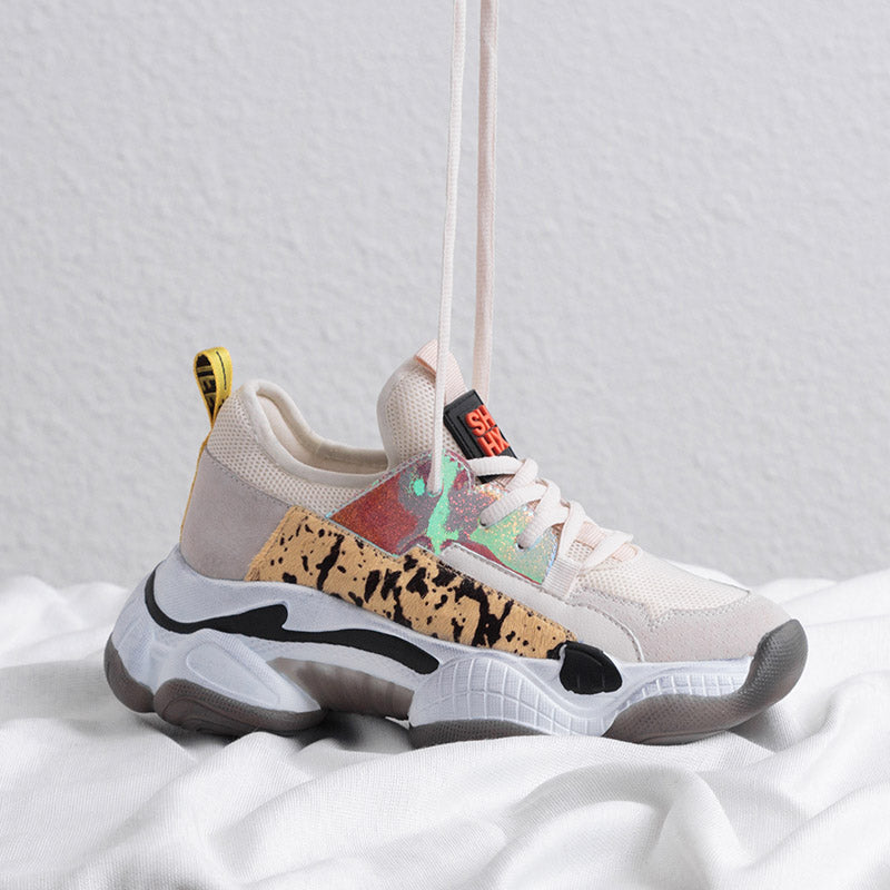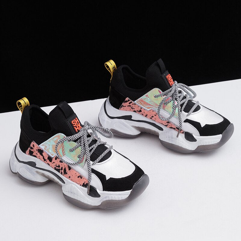 Horsehair Chunky Sneakers Women Plus Size 35-42 Genuine Leather Women Sneakers Summer Breathable Platform Shoes Woman