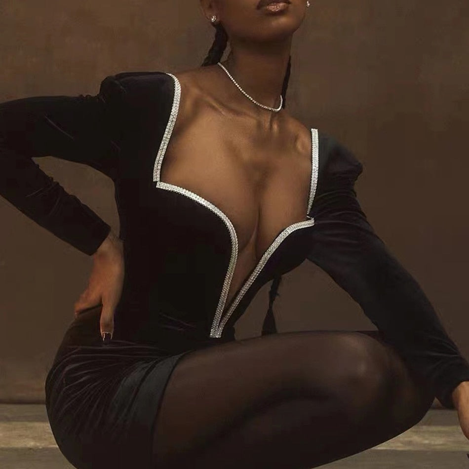 V Neck Club Mini Dress Sexy Women