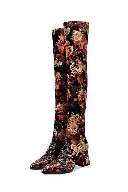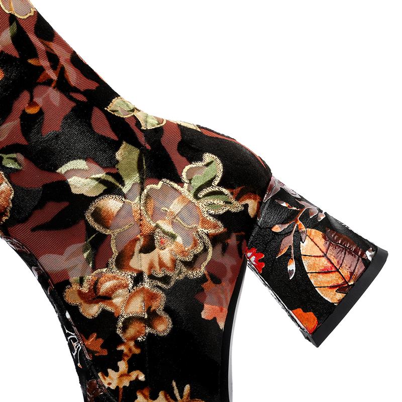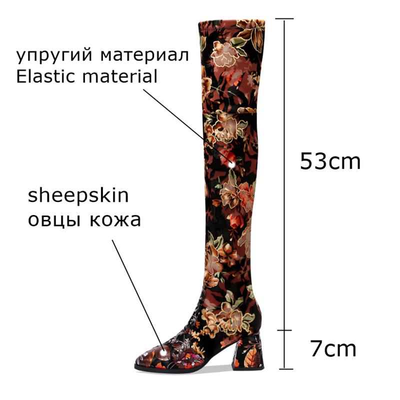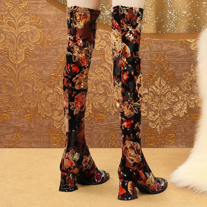 new genuine leather Elastic material high quality women boots floral girls long boots Autumn Winter fashion boots