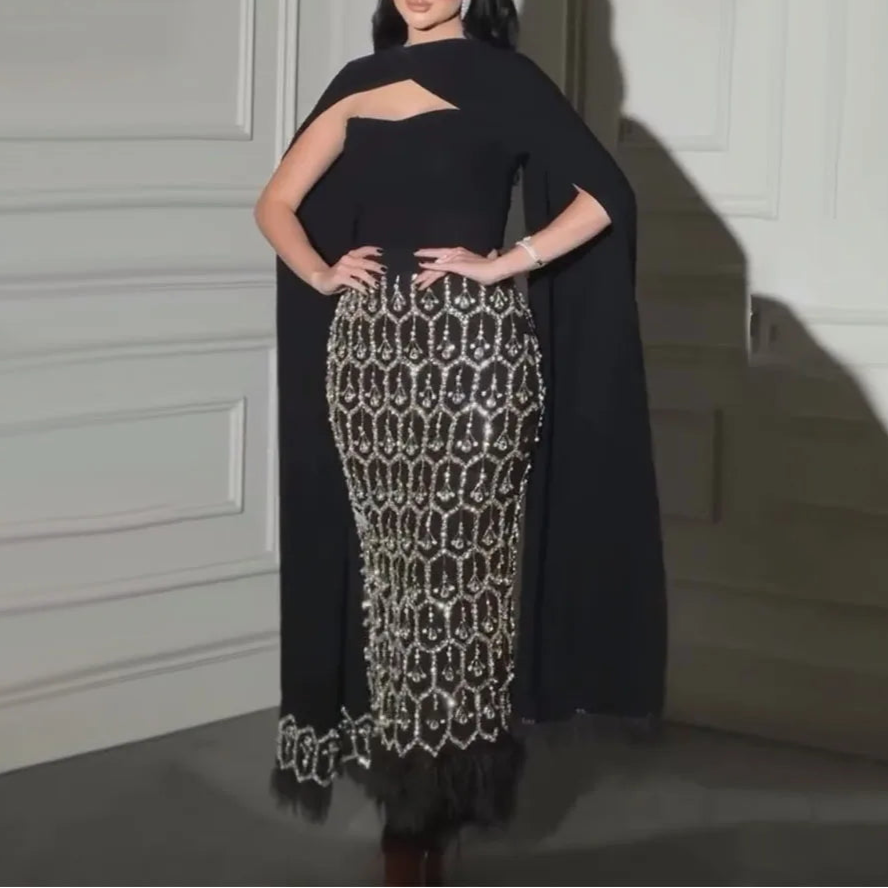 Ankle-Length Mermaid Party Dress with Beading and Feathers – Sleeveless Square Neck Tulle Gown