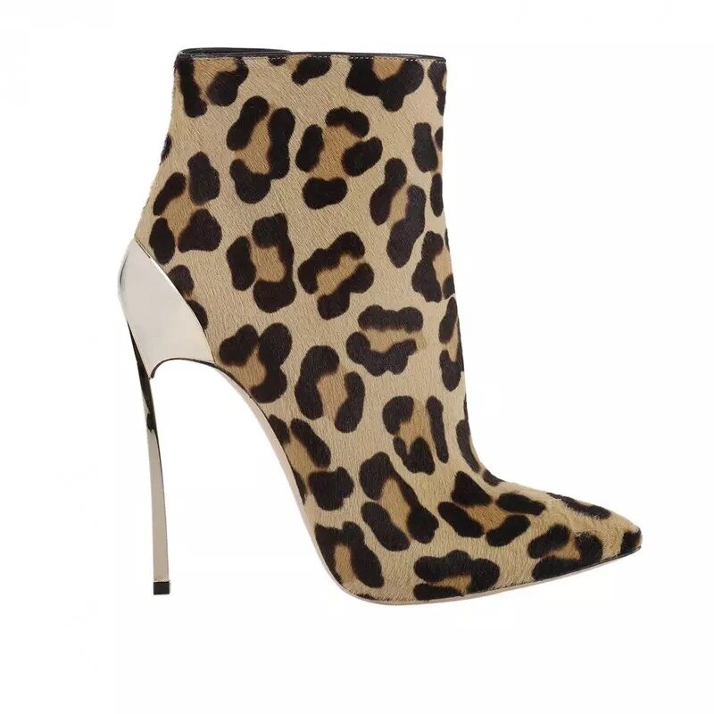 Steels Sexy High Heels 12cm Stilettos Leopard Women Ankle Boots