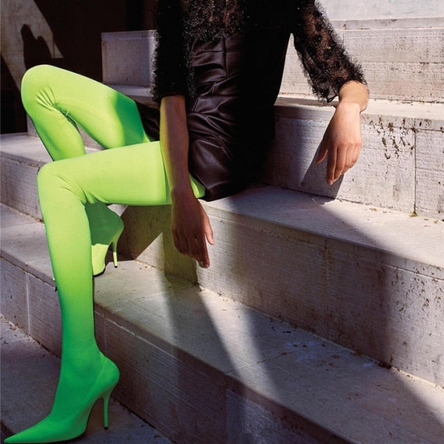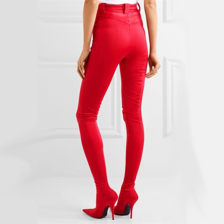 Pants Boots Women Pointed Toe Stilettos Heels Over The Knee Boots