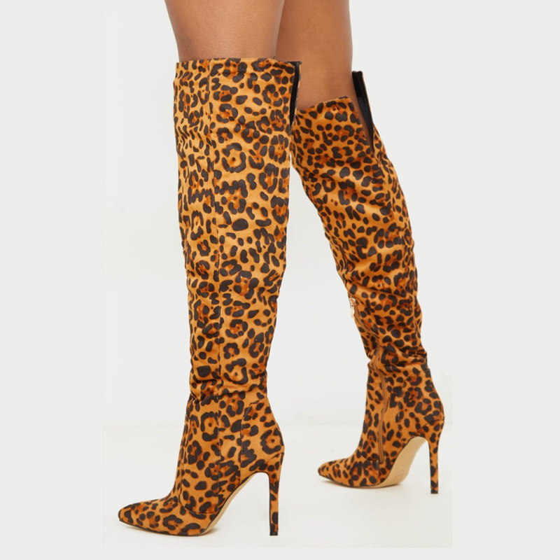 Women Pointed Toe Stilettos Shiny leather Knee high boots high heels