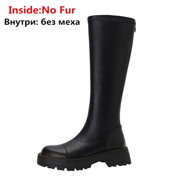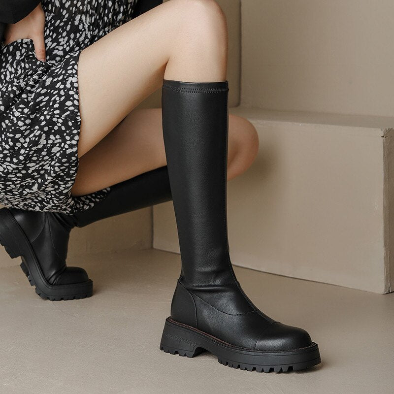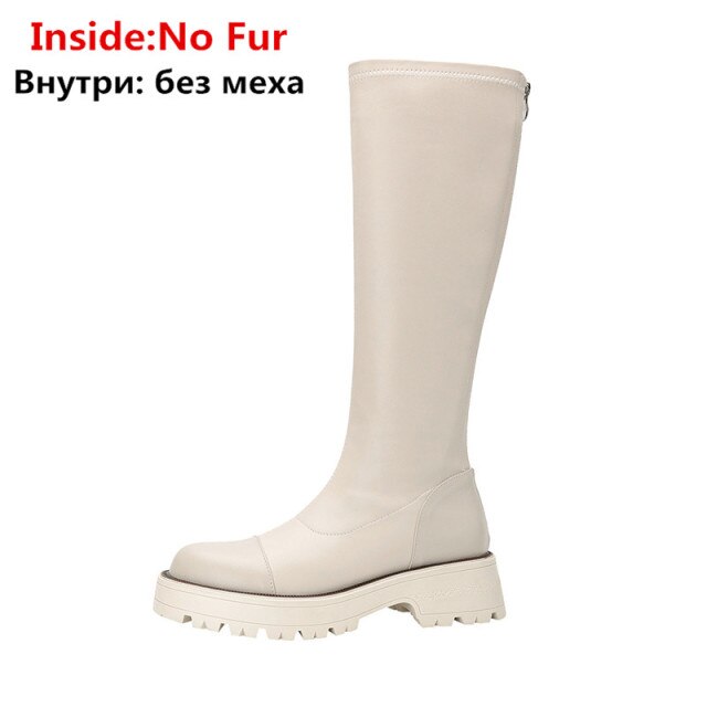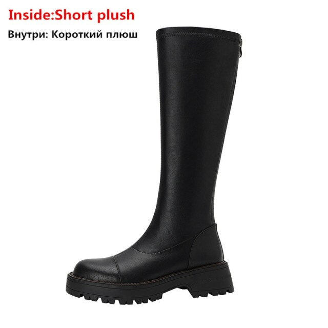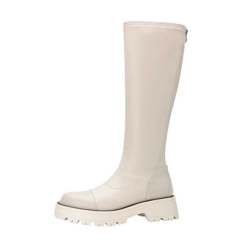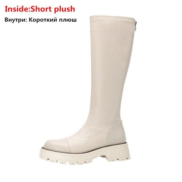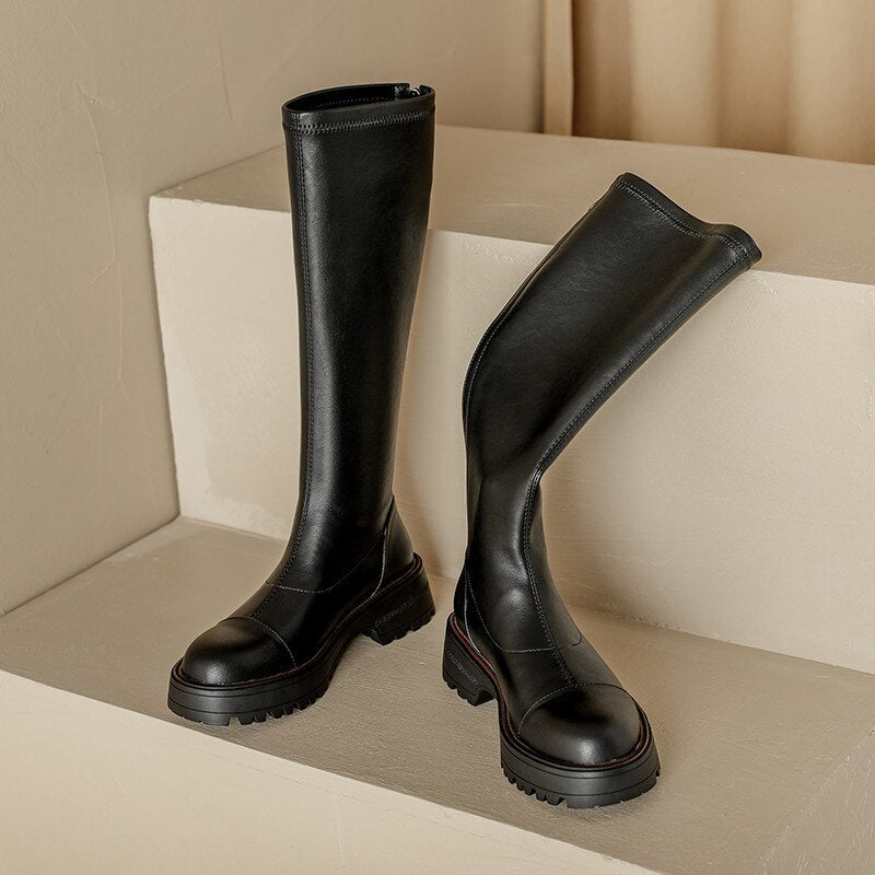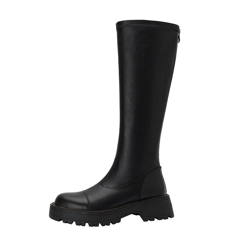 Knee High Boots Women Flat Shoes Round Toe