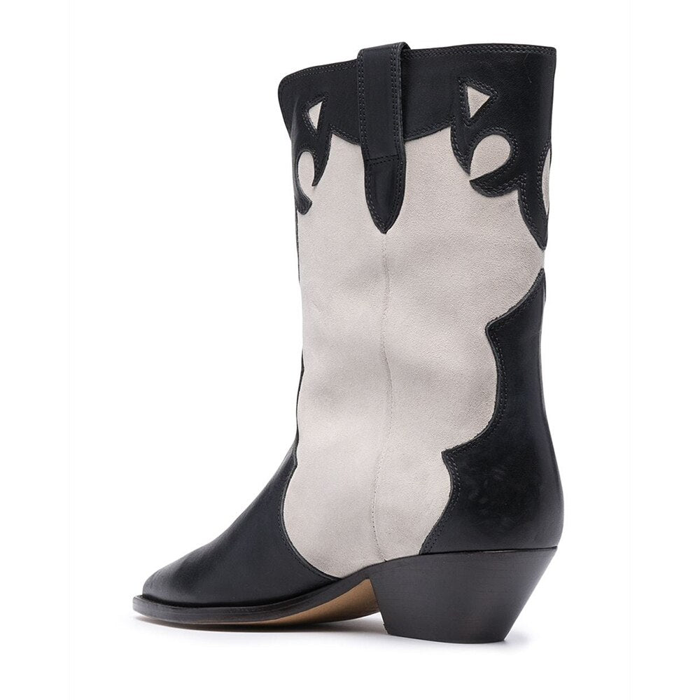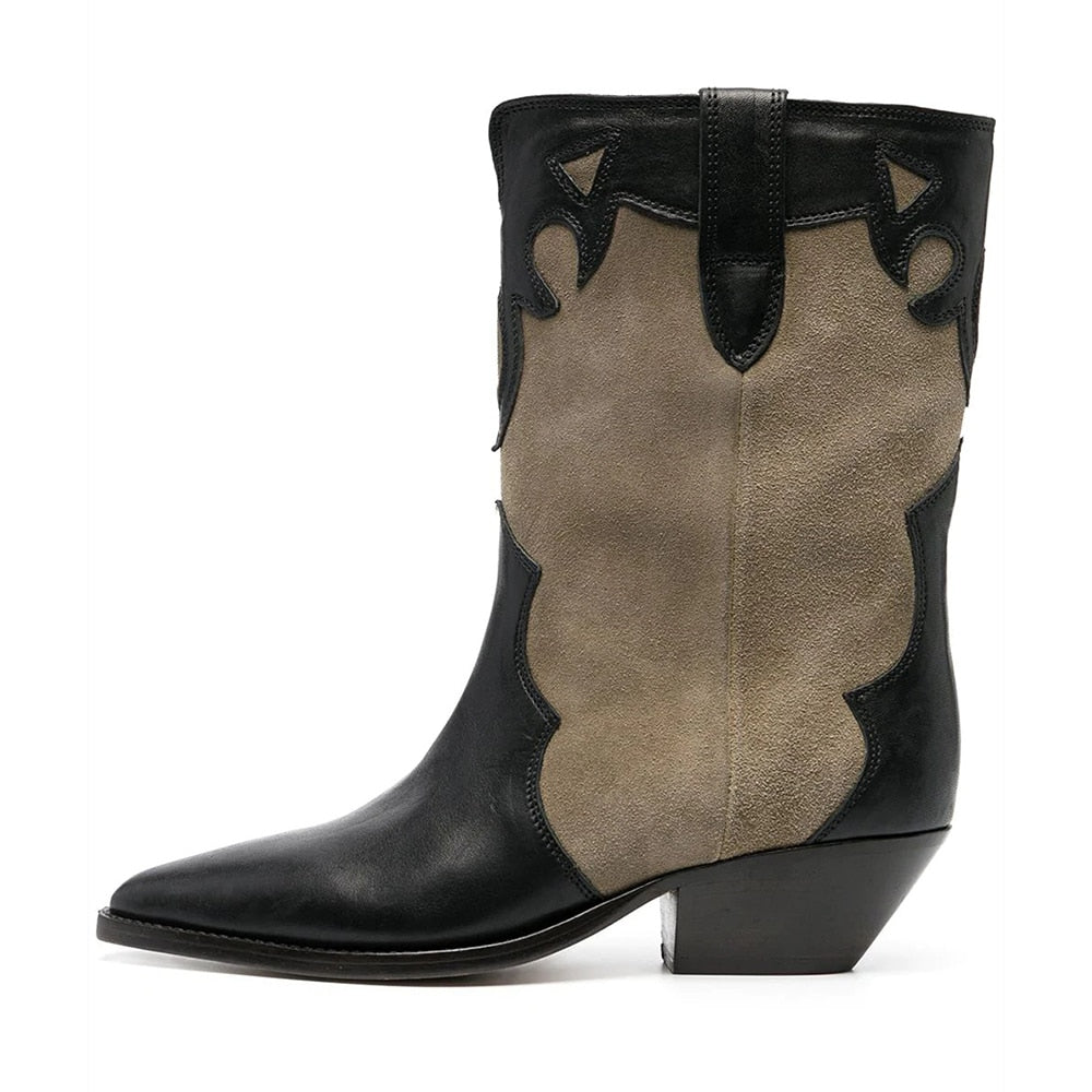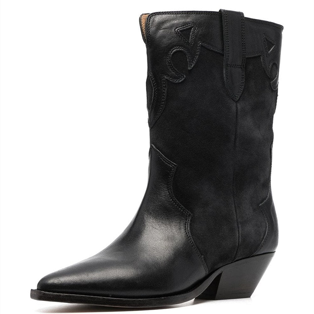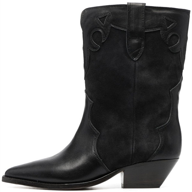 Women Leather Low-Heel Pointed Toe Cowboy Boots