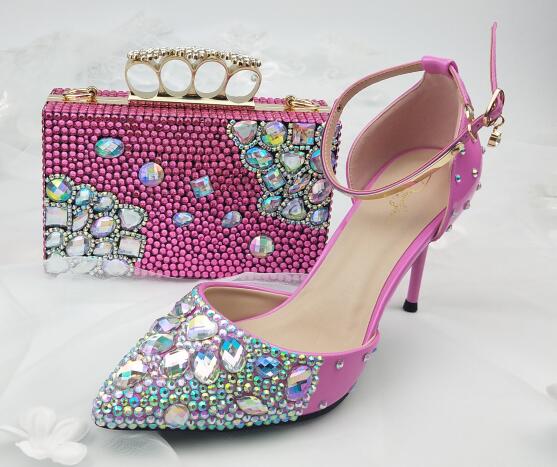 pink color women summer sandals pointed toe ankle strap crystal wedding shoes Bride thin heel party dress shoe