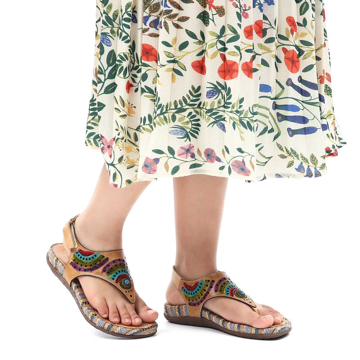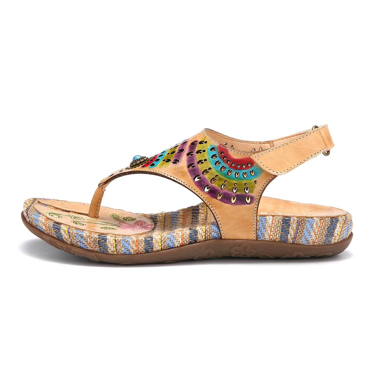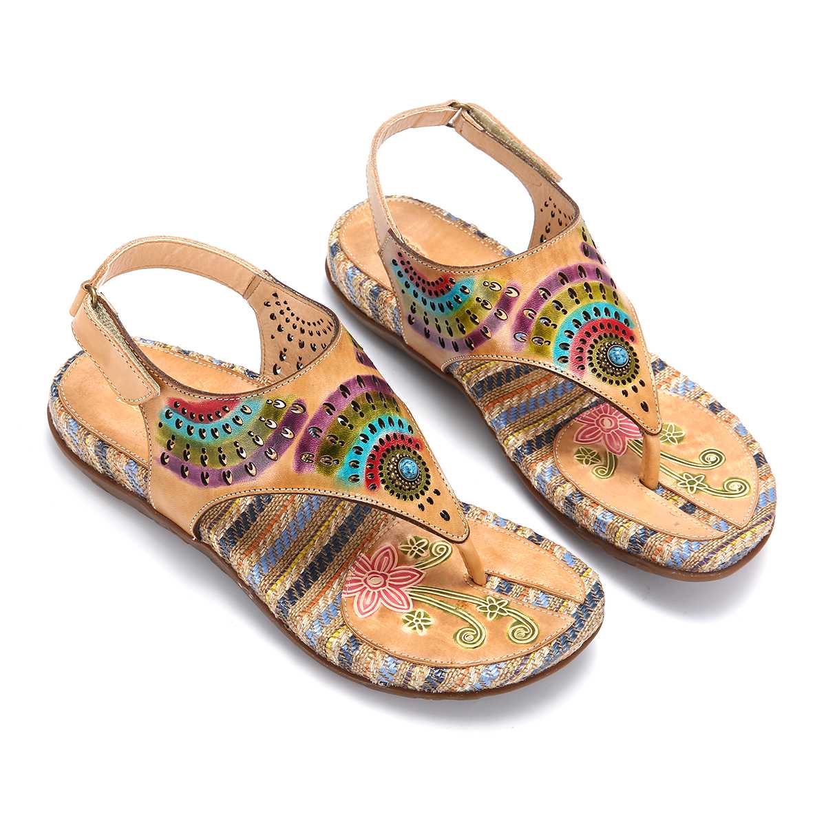 Beach Flip Flops Printed Leather Sandals Ladies Shoes