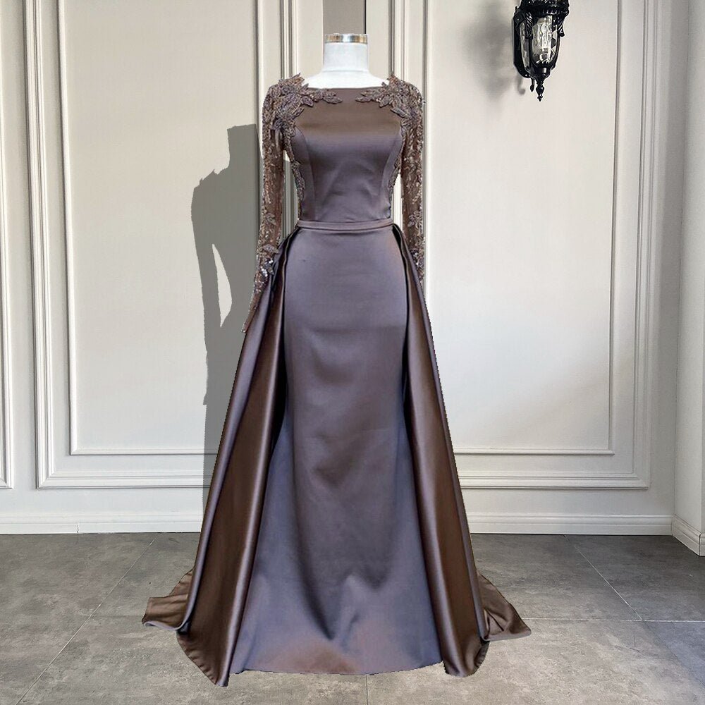 Beaded Brown Satin Women Formal Party Evening Gowns