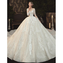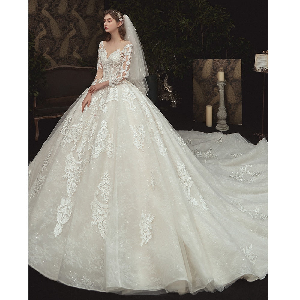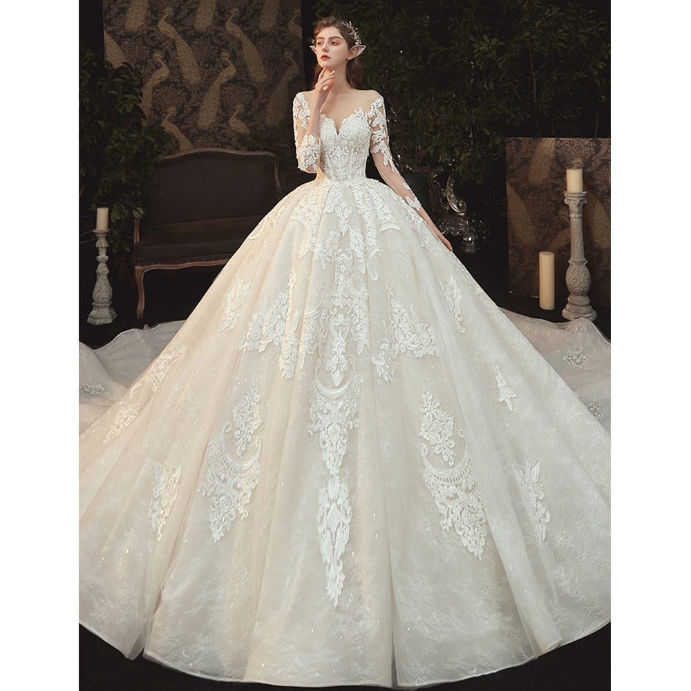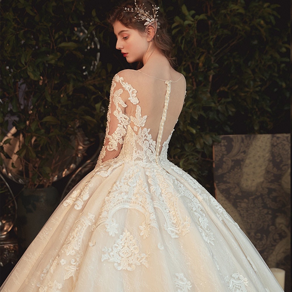 Beading Pearls Appliques Lace Illusion Princess Ball Gown