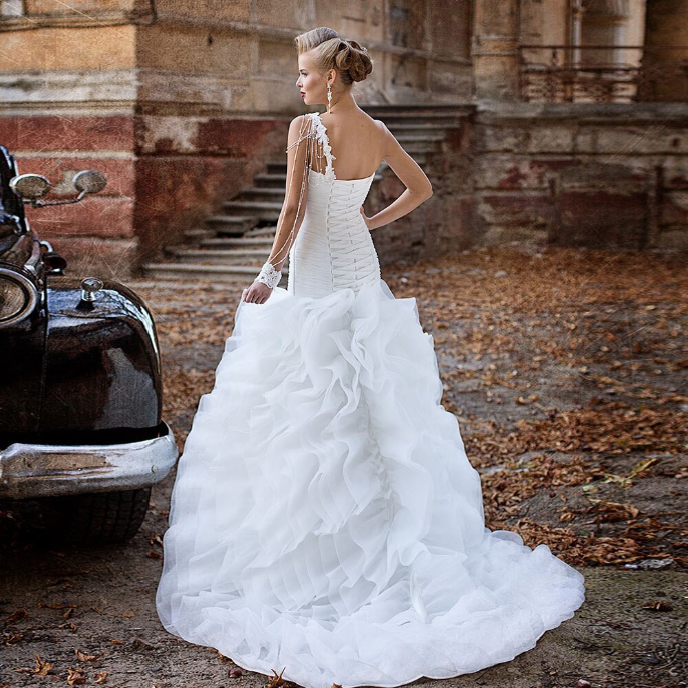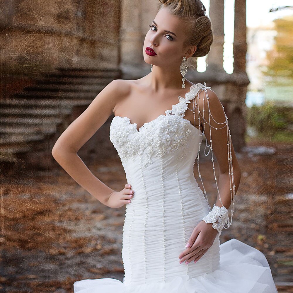 Beading Pearls Pleat White Trumpet Wedding Dresses