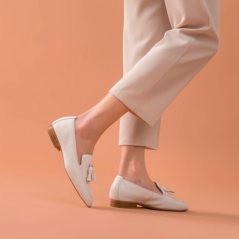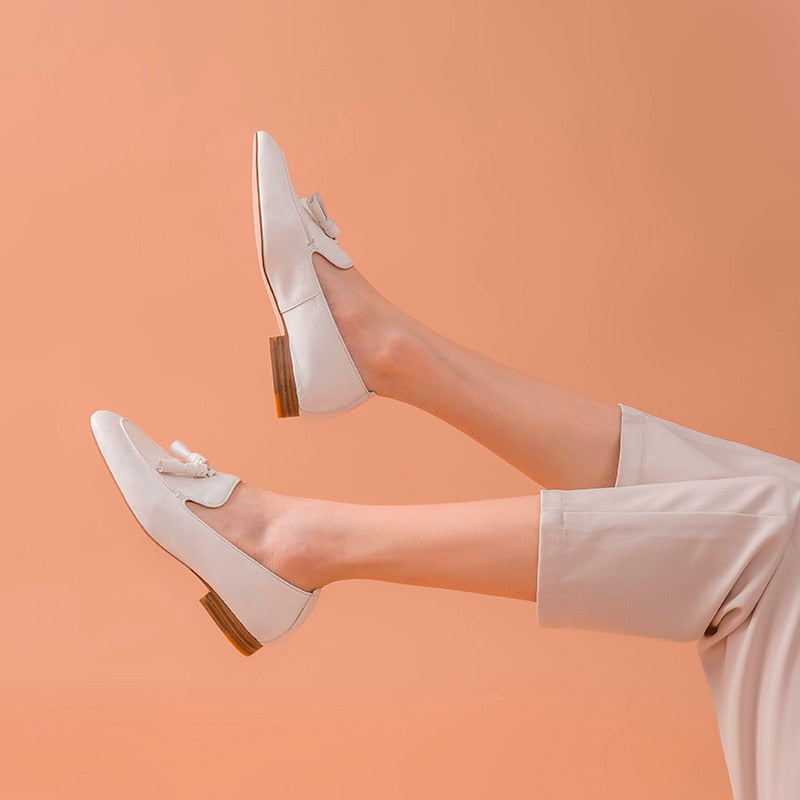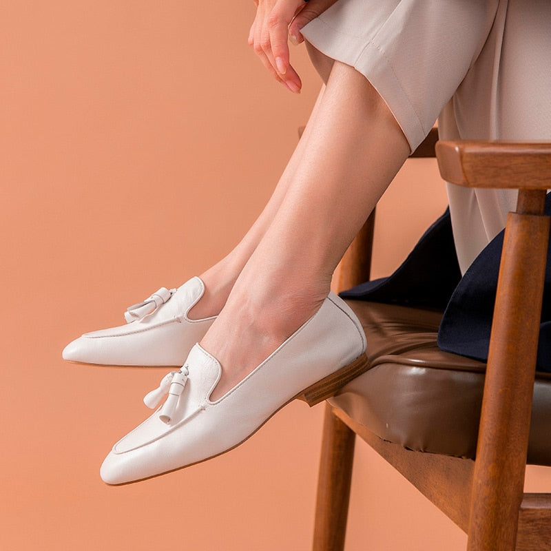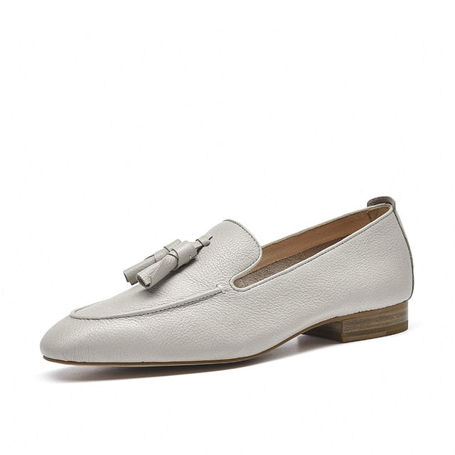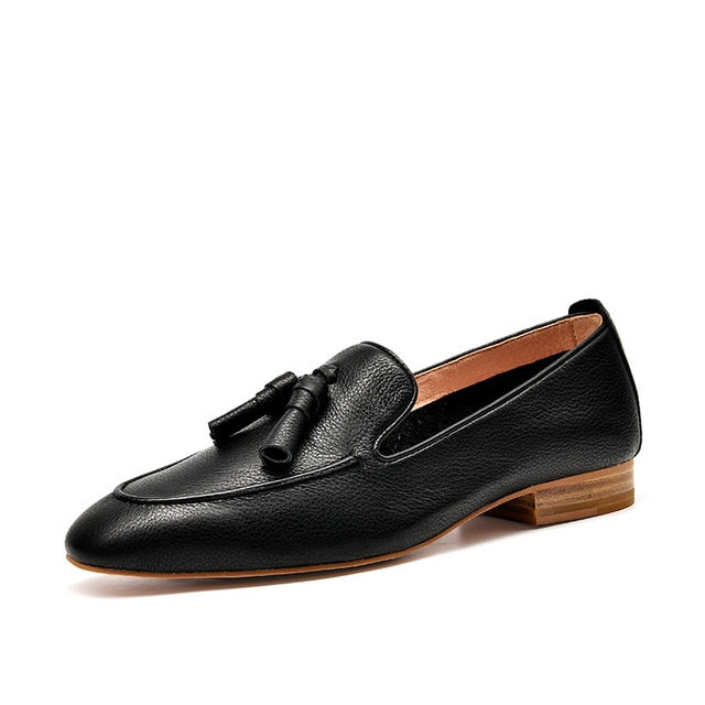 Loafers Women Genuine Cow Leather Fringes Square Toe Slip-On Spring Autumn Lady Flats Handmade