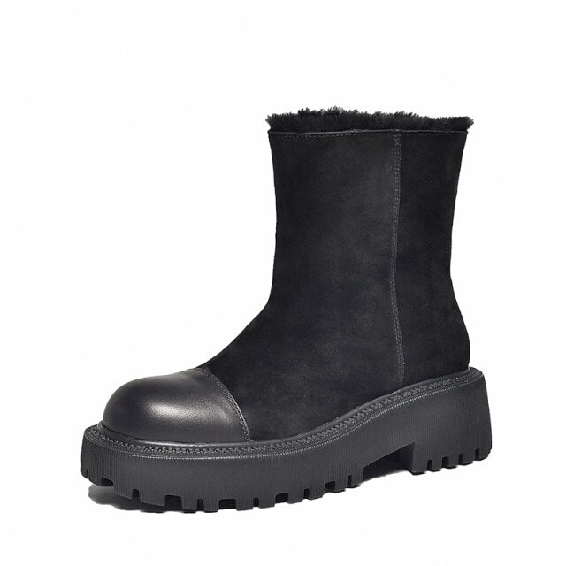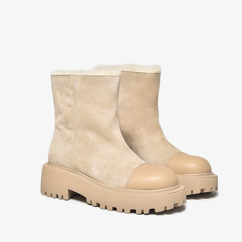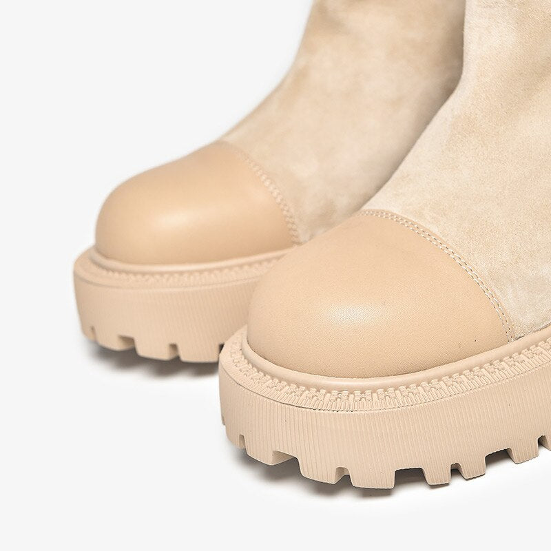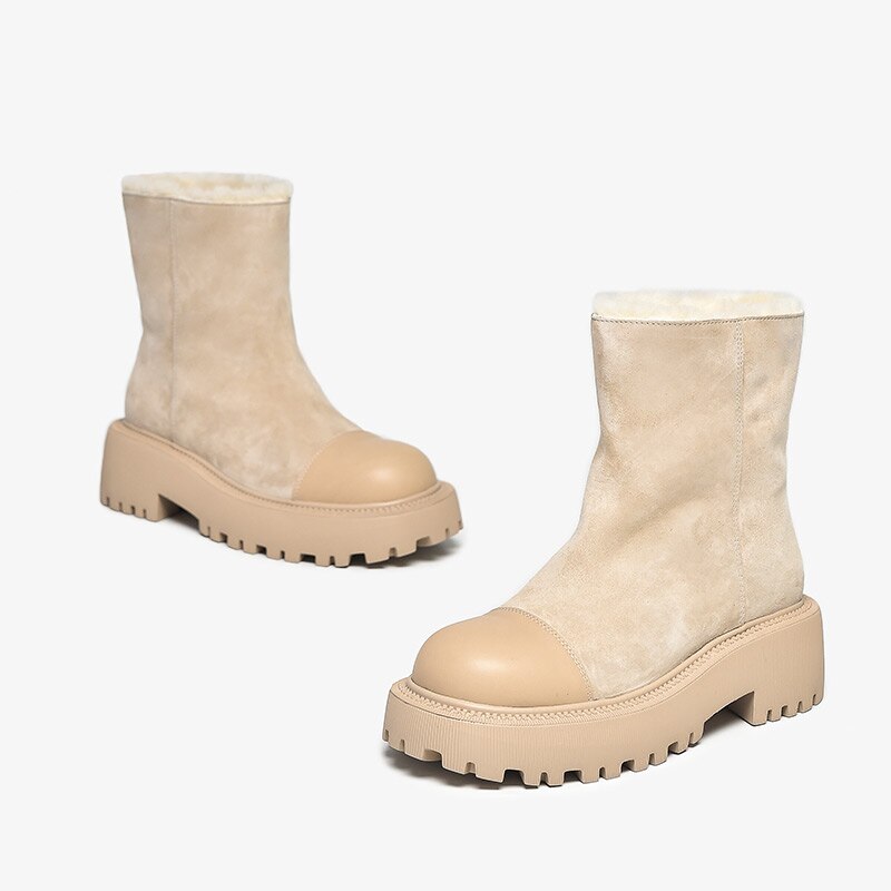Women Kid Suede Cow Leather Patchwork Ankle Boots