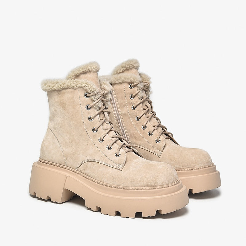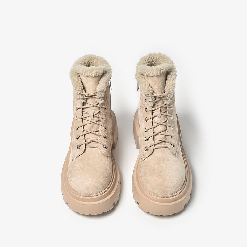 Women Kid Suede Leather Ankle Boots Warm Wool Shoes