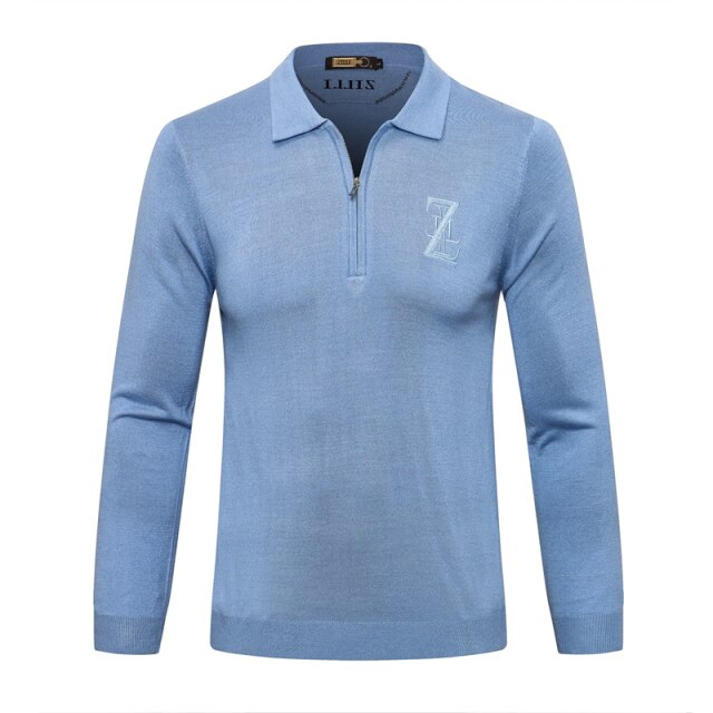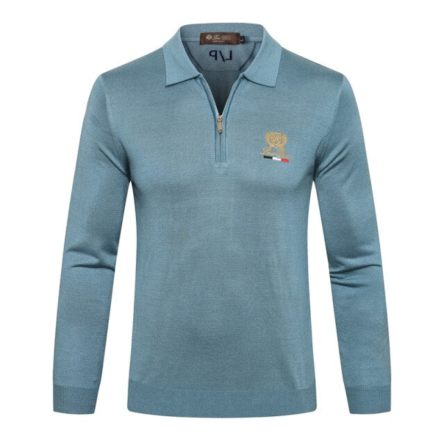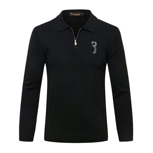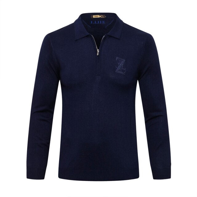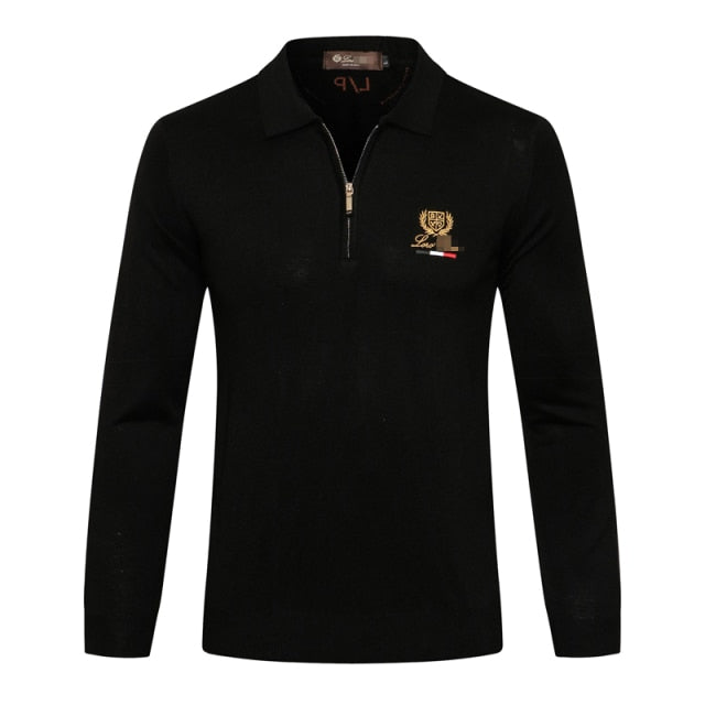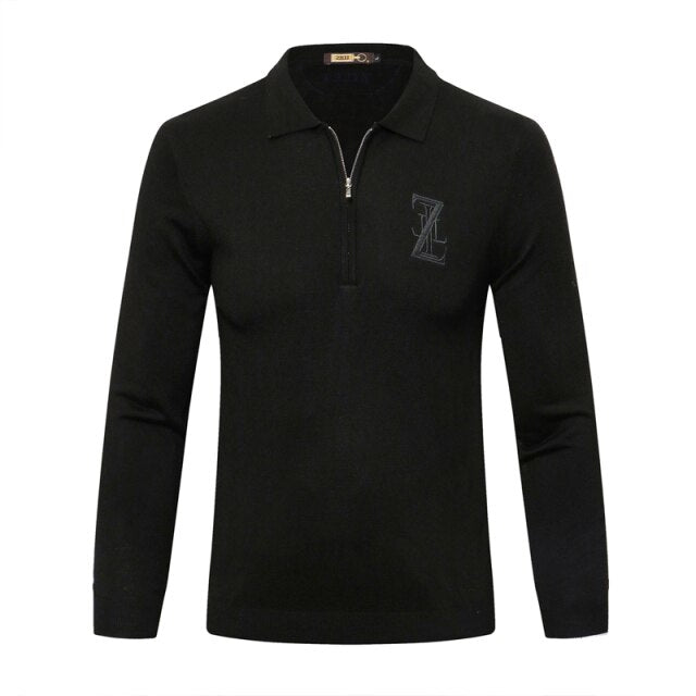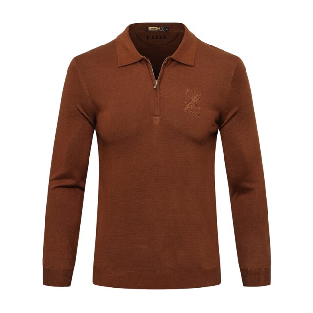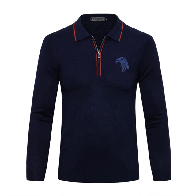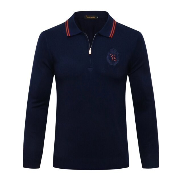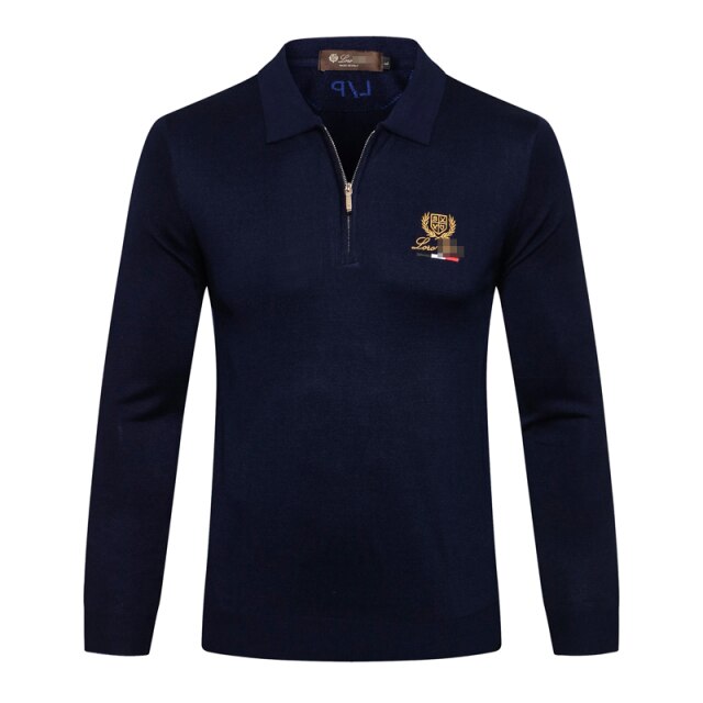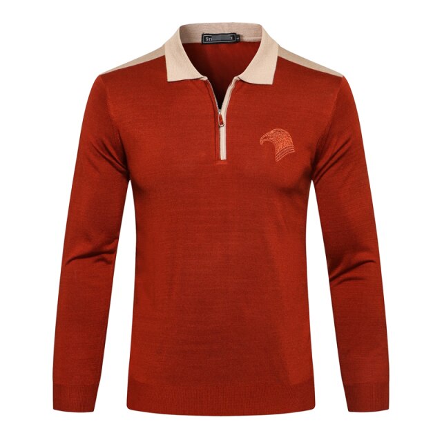 men's warm zipper Embroidery Long sleeve Sweater wool