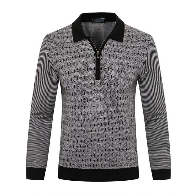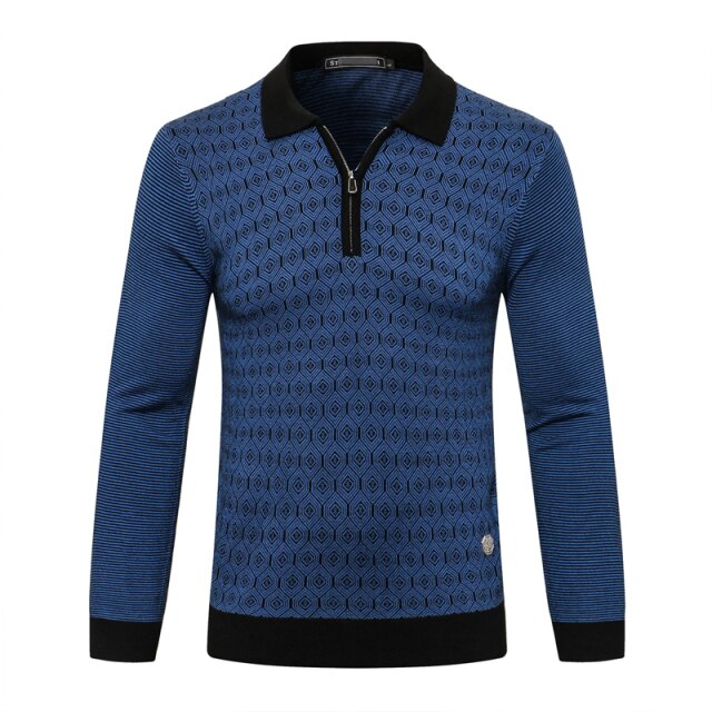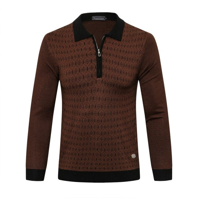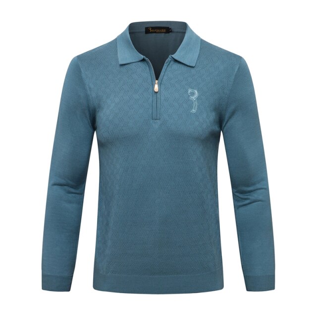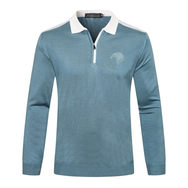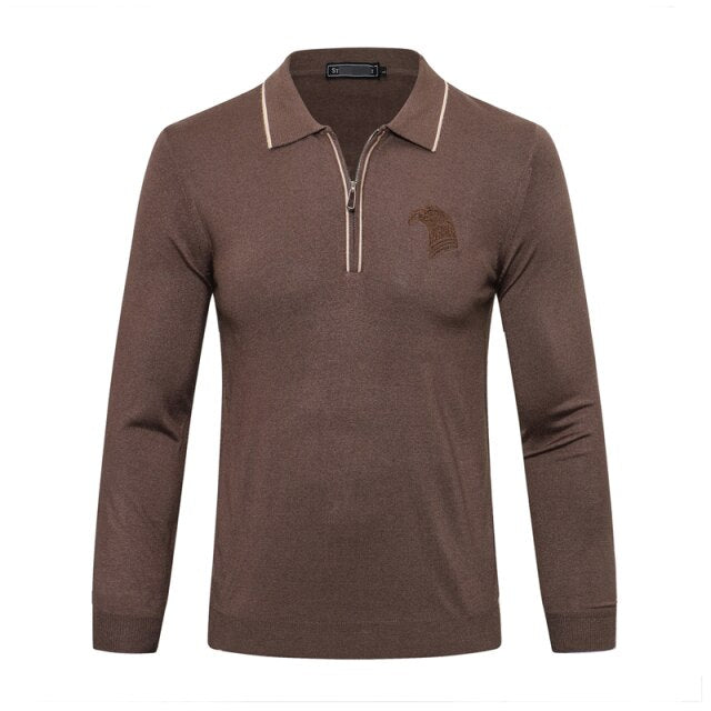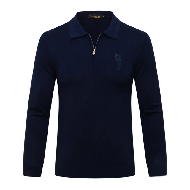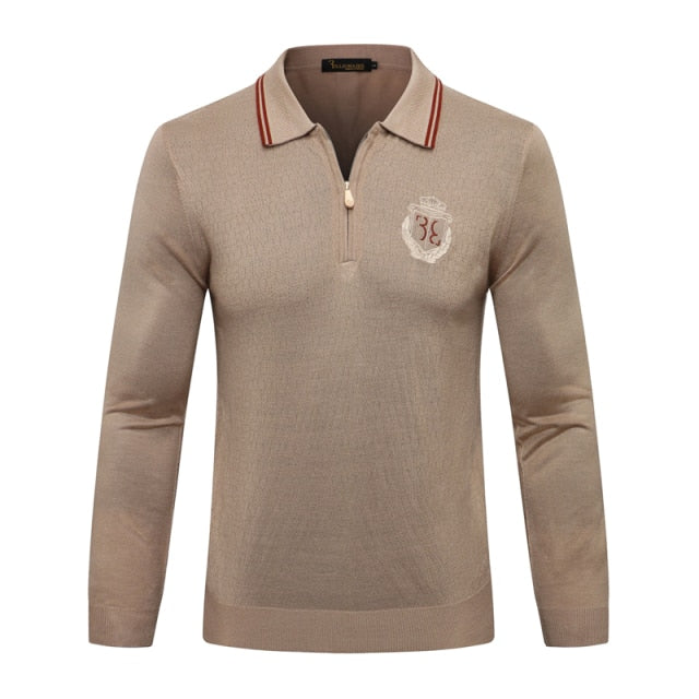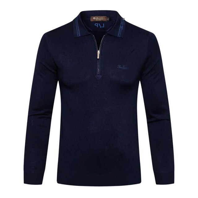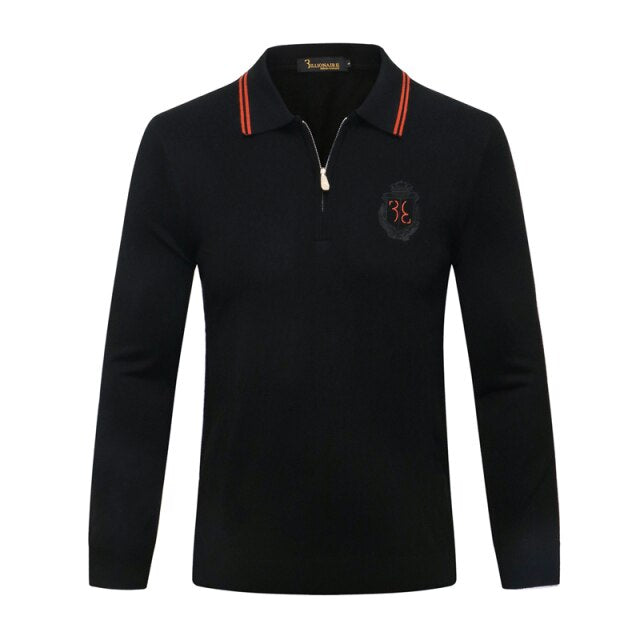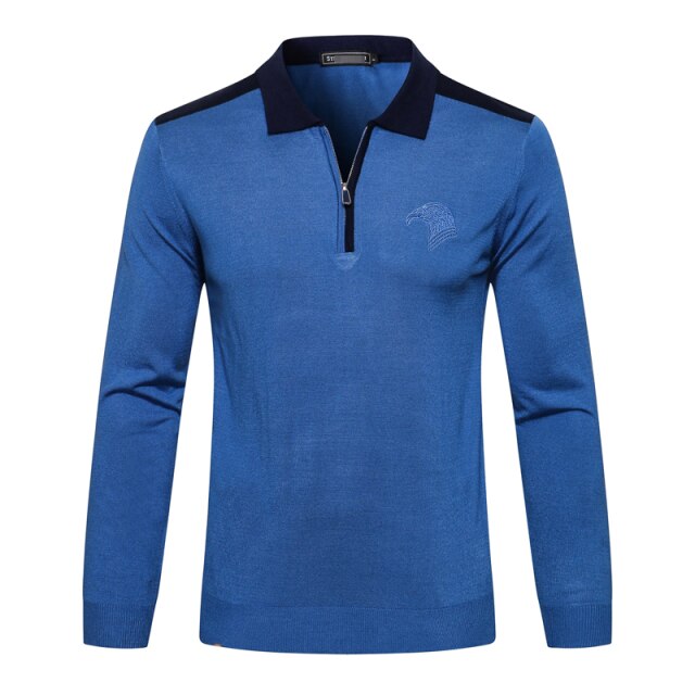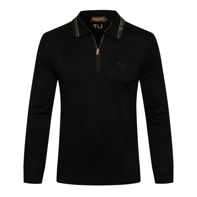 men's warm zipper Embroidery Long sleeve Sweater wool