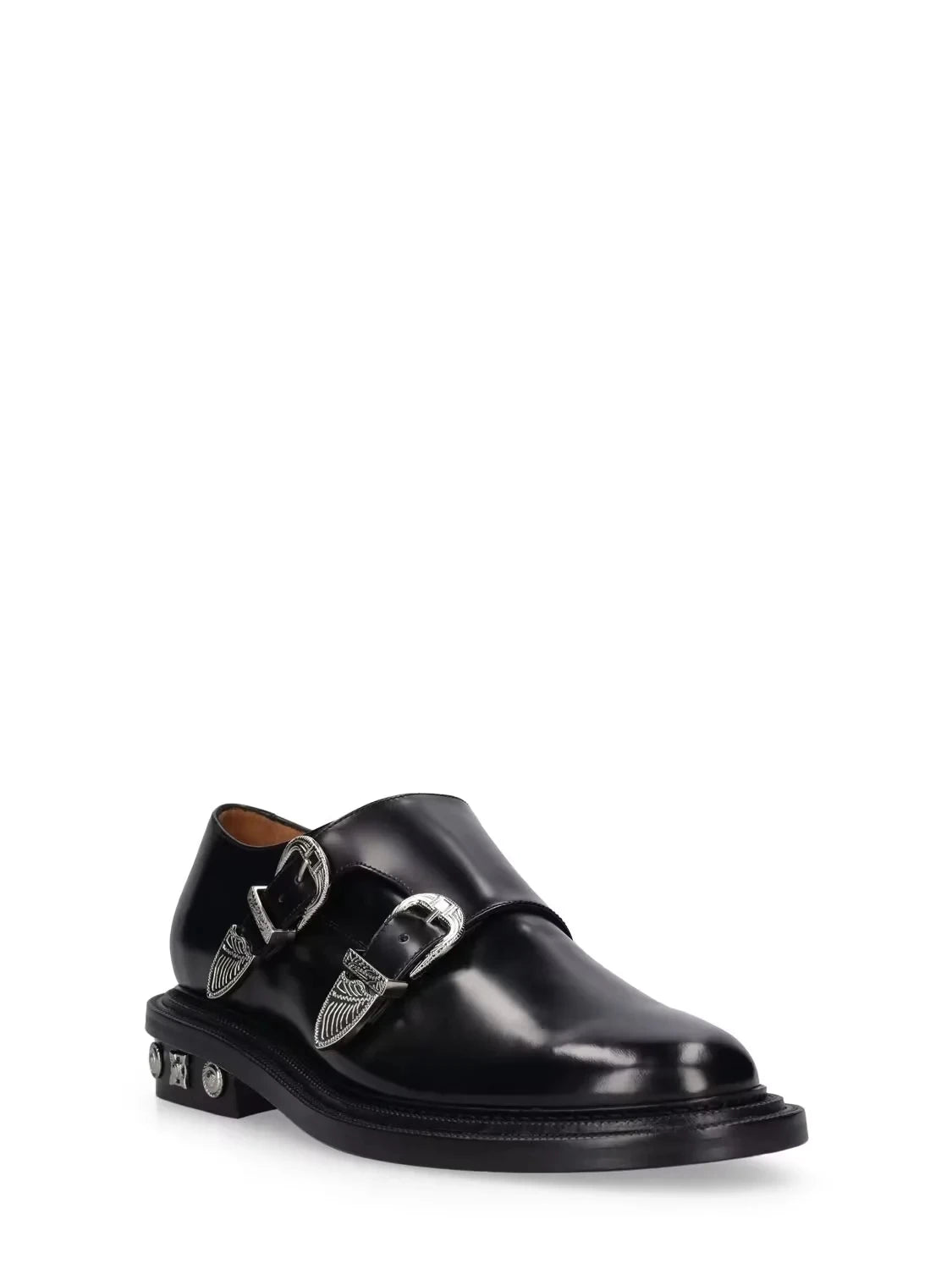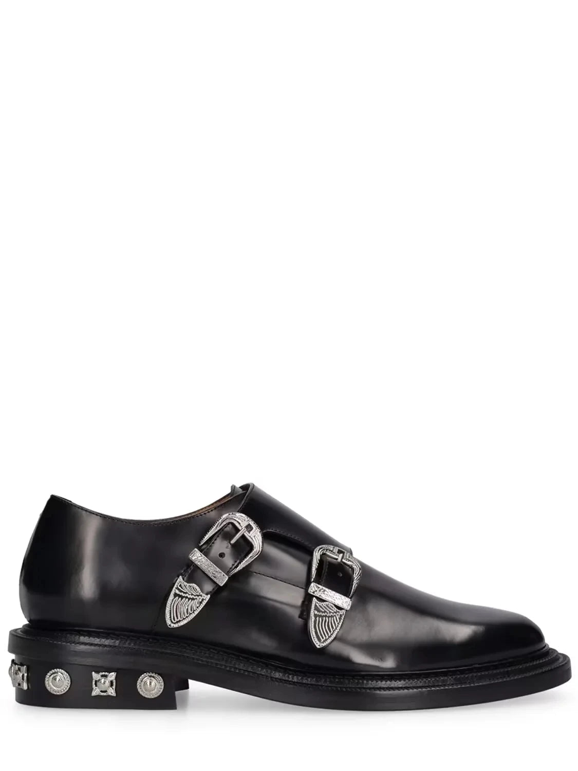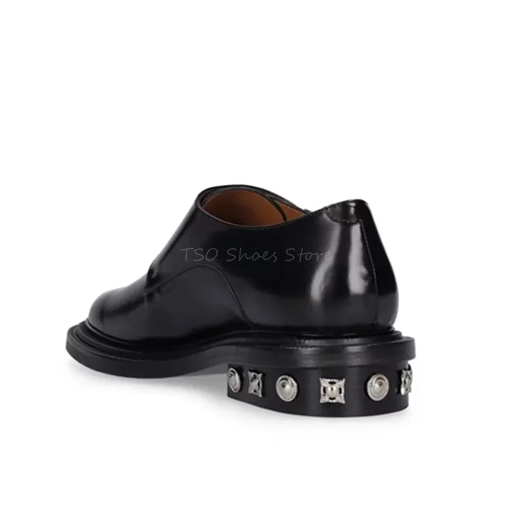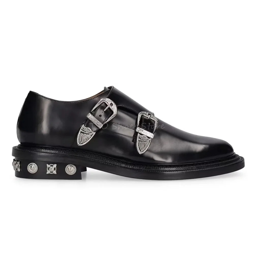Black Genuine Leather Loafers with Metal Belt Buckle for Men