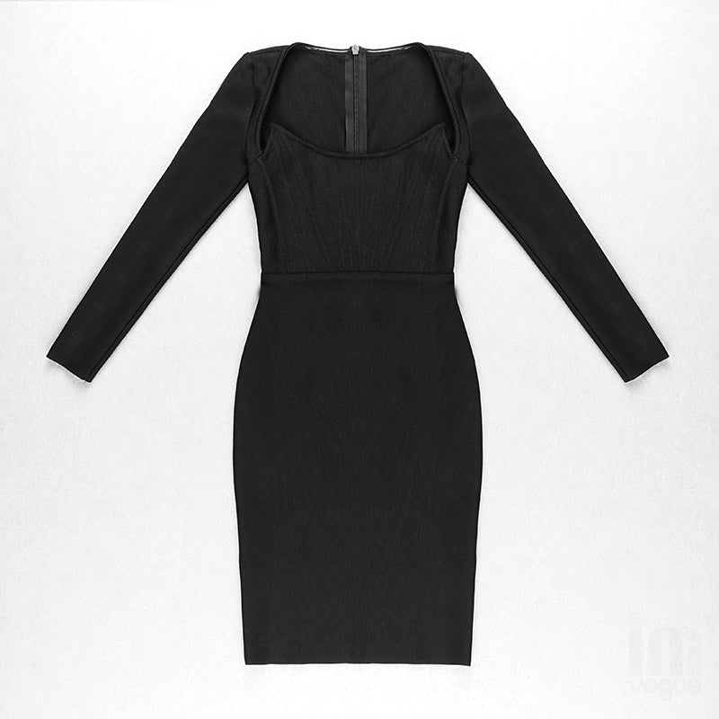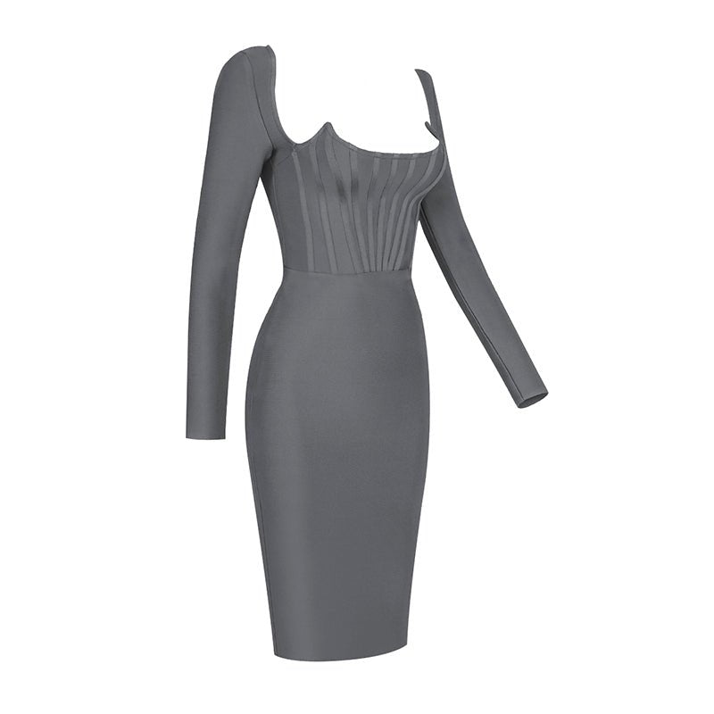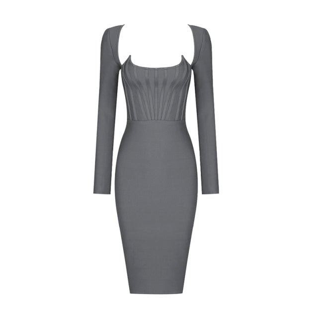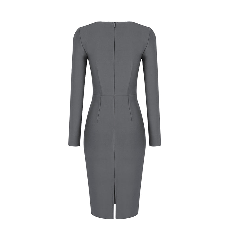 High Quality Black Grey Long Sleeve Bodycon Rayon Bandage Dress Elegant Cocktail Party Dress Vestidos