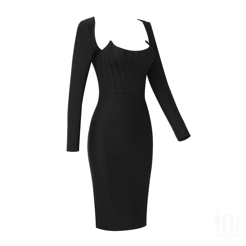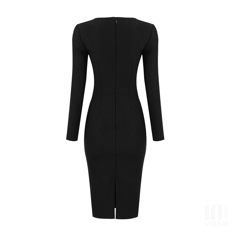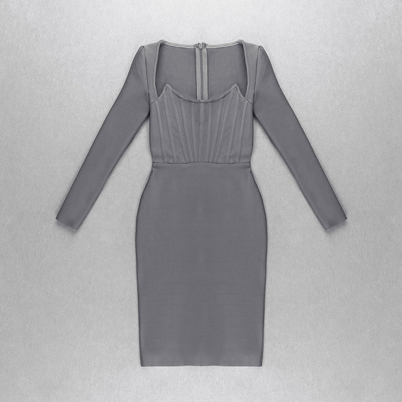 Black Grey Long Sleeve Bodycon Rayon Bandage Dress