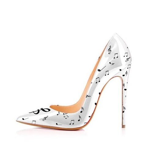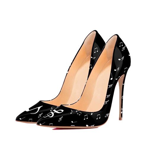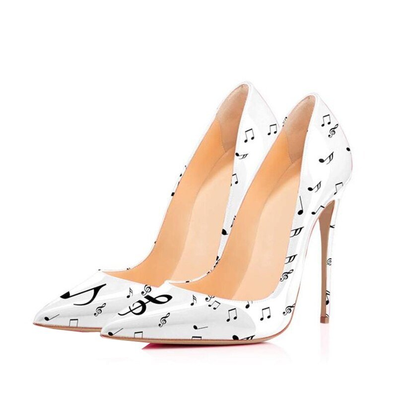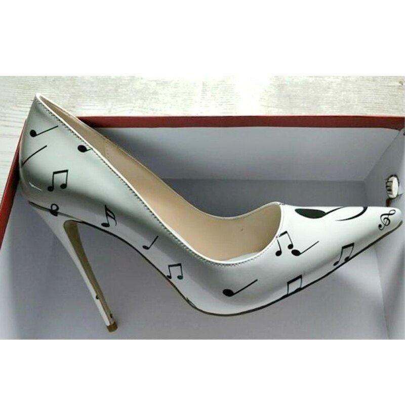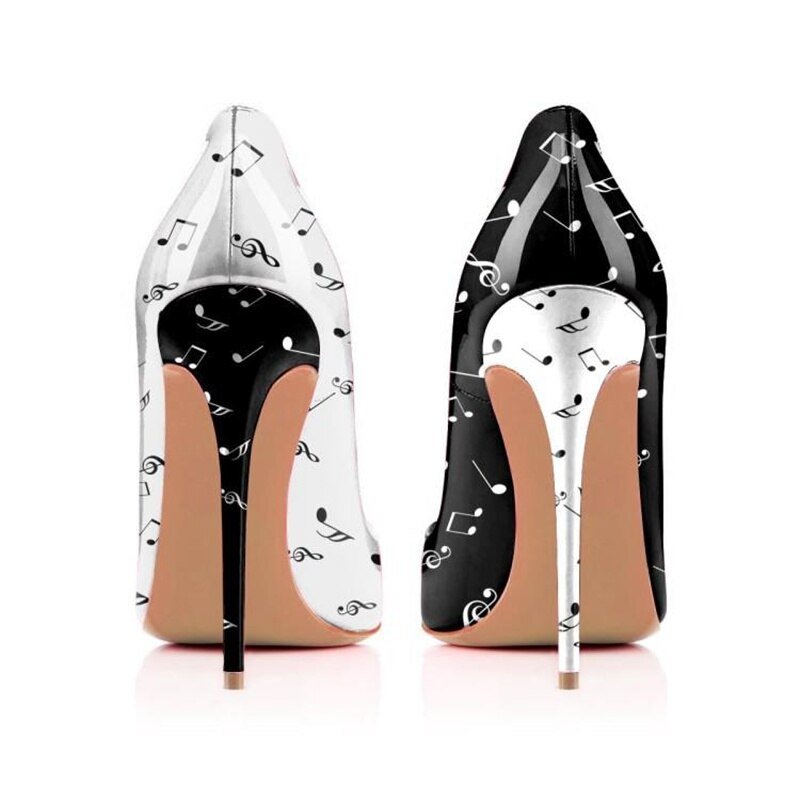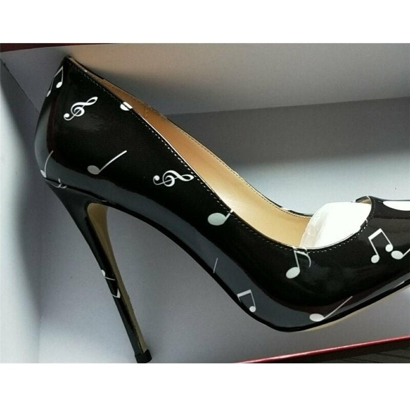 Black White Music Notation 12cm High Heels Woman Pumps