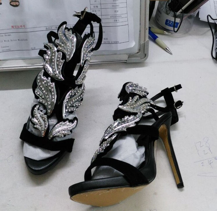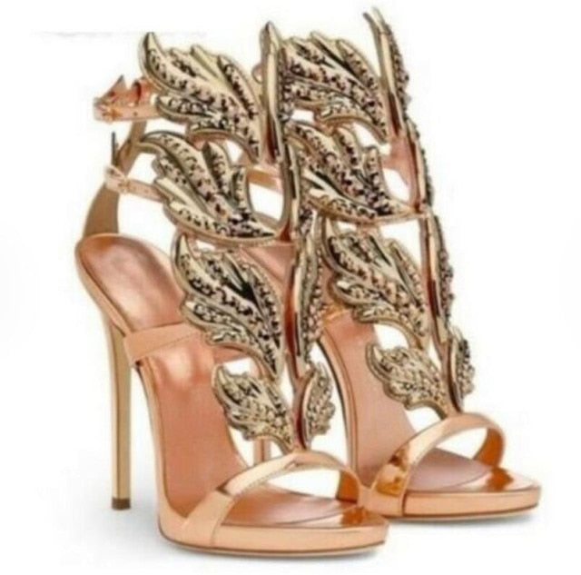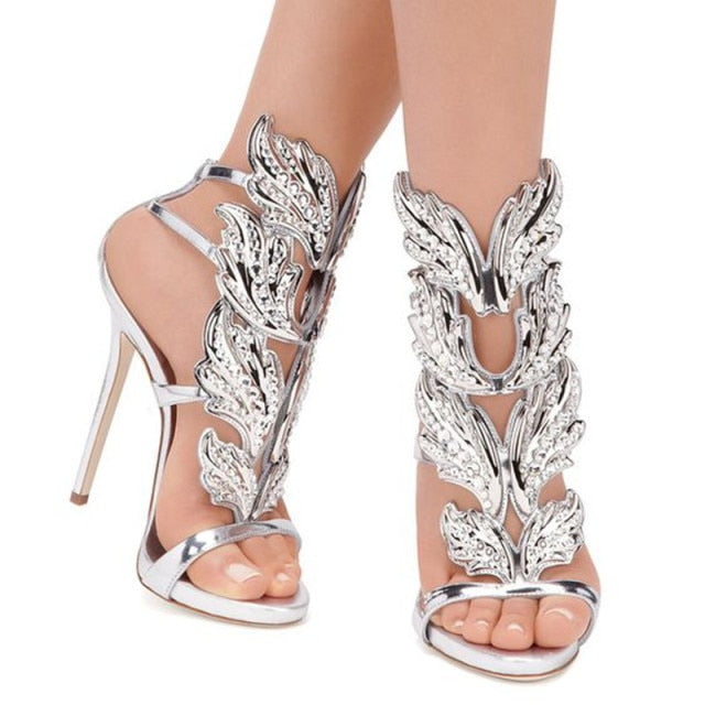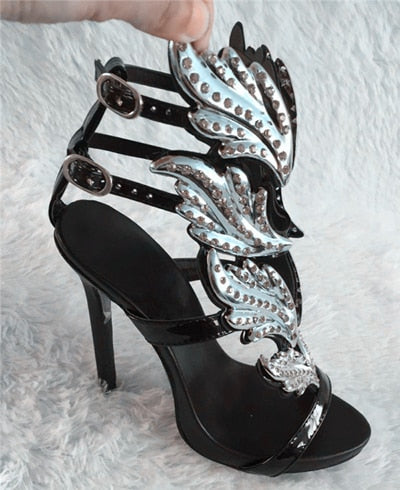 Bling Bling Crystal Drilled Angle Wings Sandals Shiner Plated