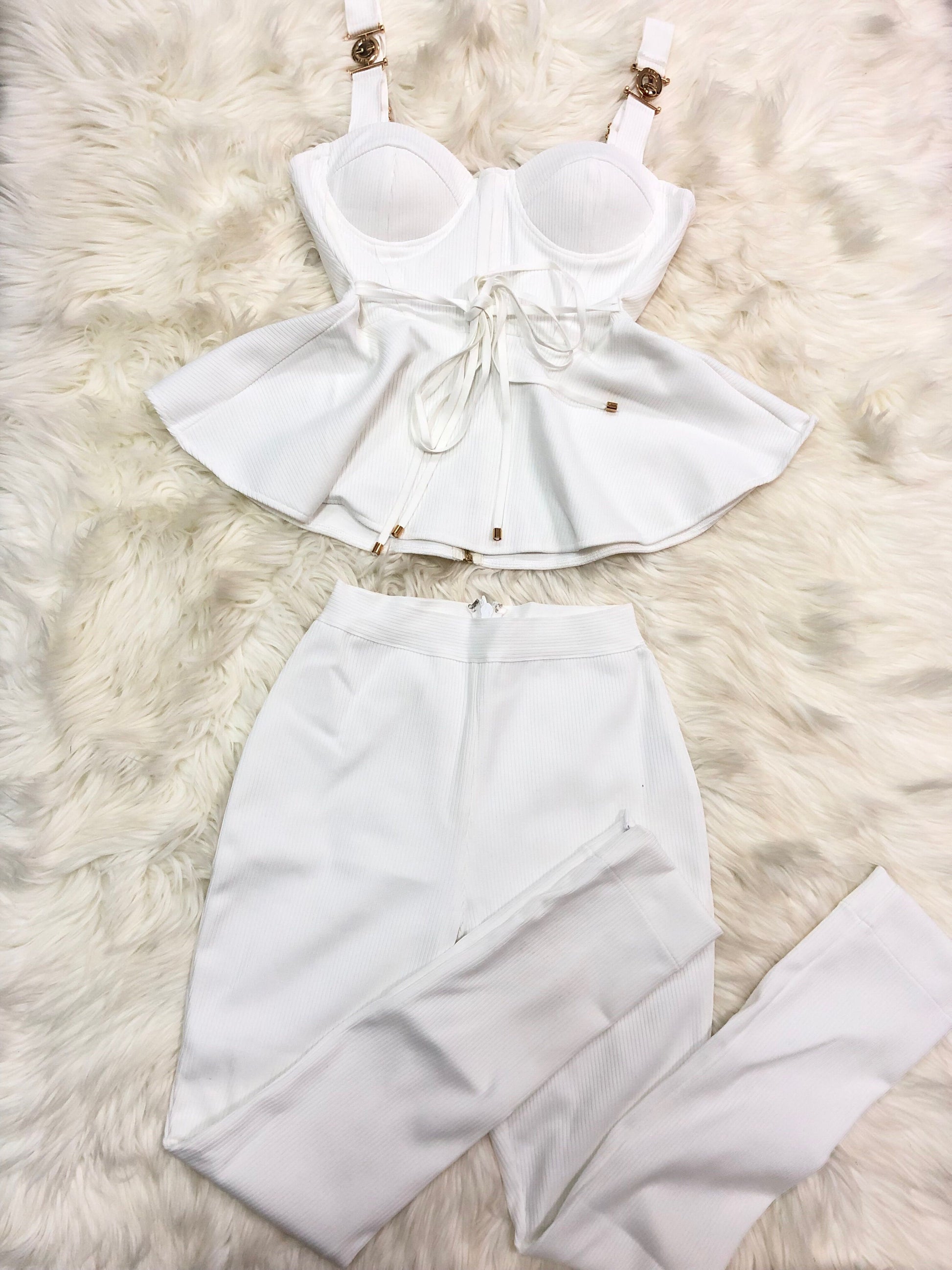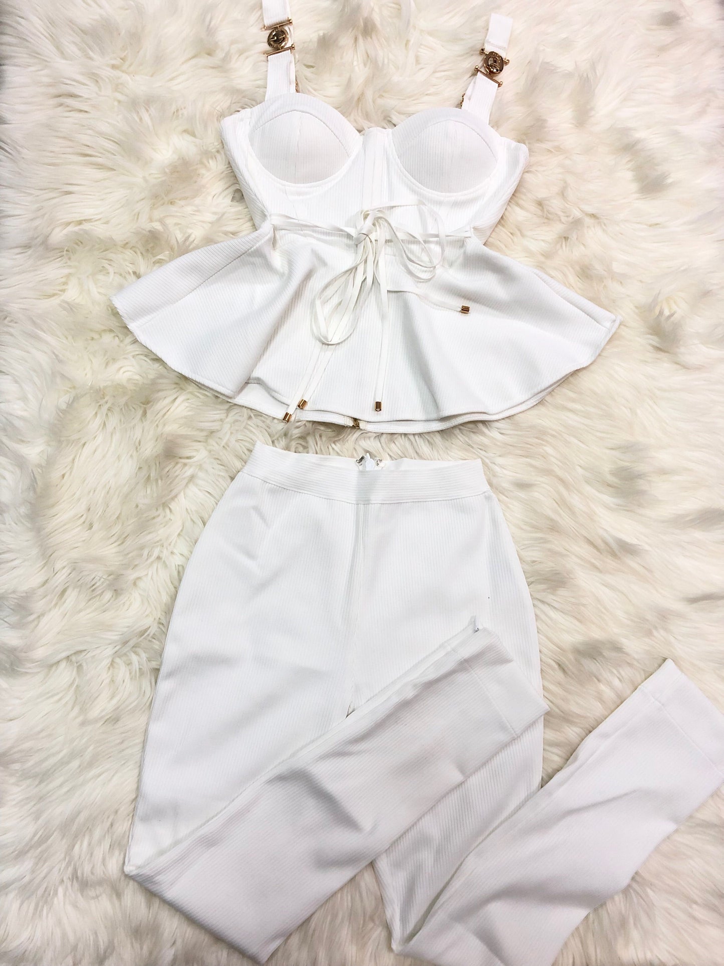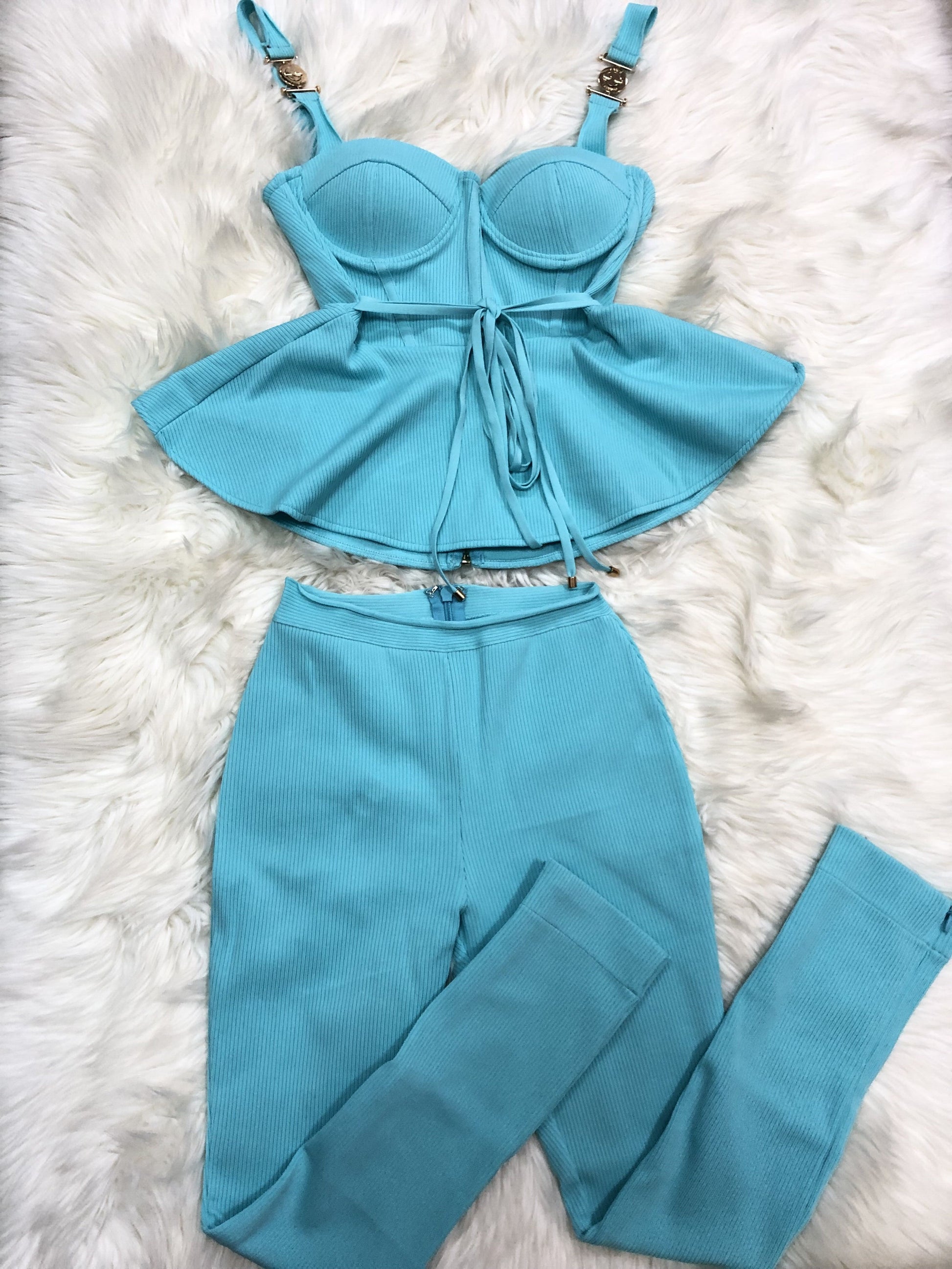 Bodycon Rayon Bandage Set Ruffles Tops Pencil Pants