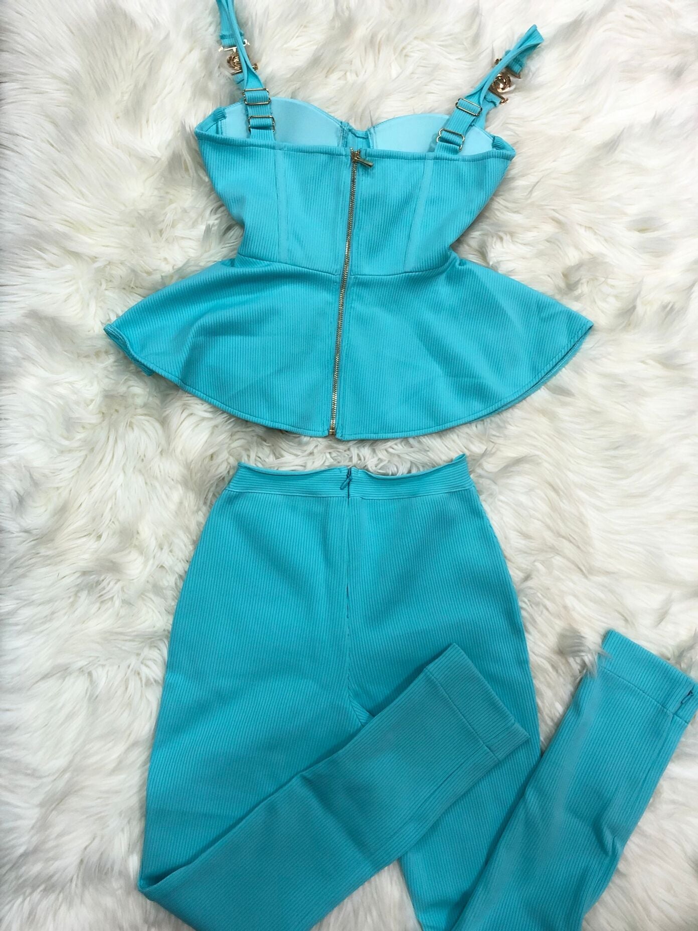 2022 New Spring Style Women Sexy 2 Pieces Bodycon Rayon Bandage Set RufflesTops Pencil Pants Celebrity Women's Set High Quality