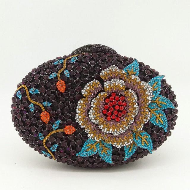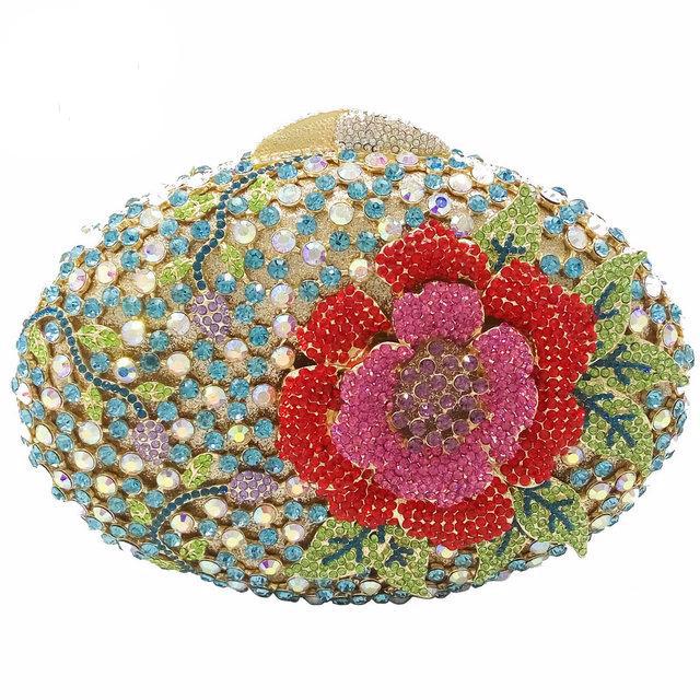 Hollow Out Rose Flower Green Crystal Women Evening Clutch Minaudiere Bag Wedding Cocktail Party Handbag Purse