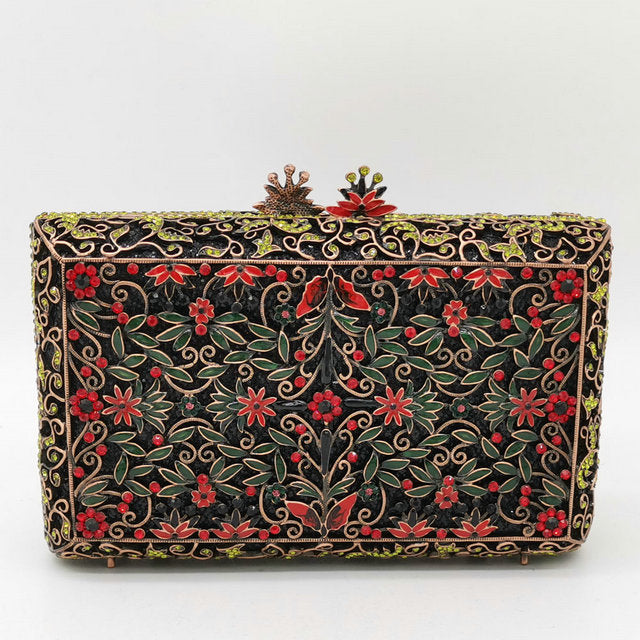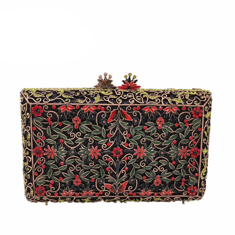 Vintage Women Crystal Evening Bags Metal Hard Case Box Clutch Diamond Minaudiere Wedding Handbag Bridal Purse