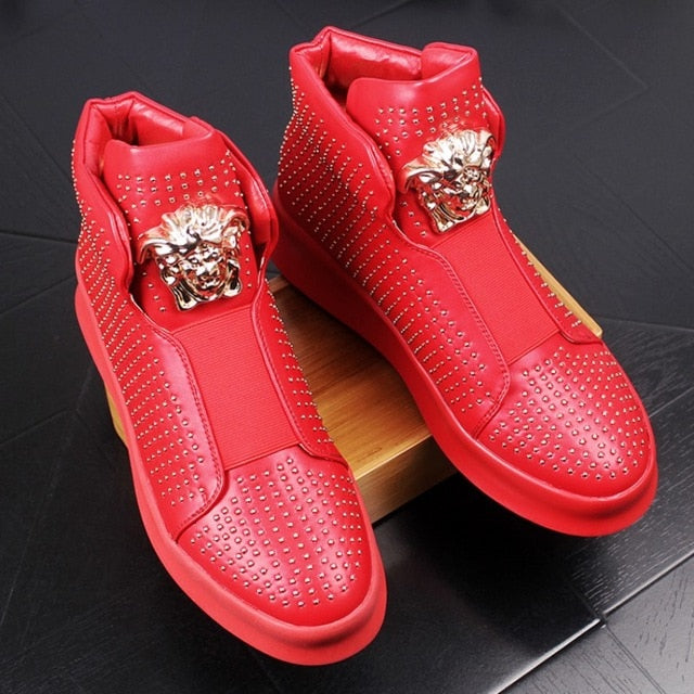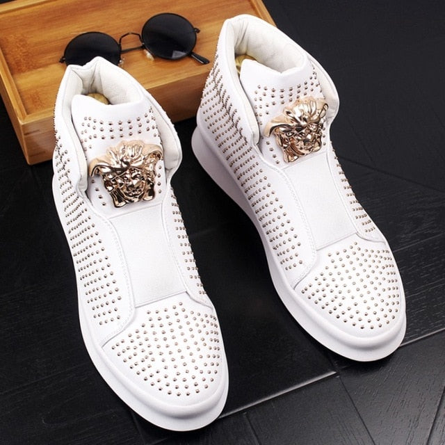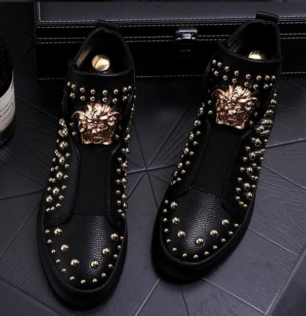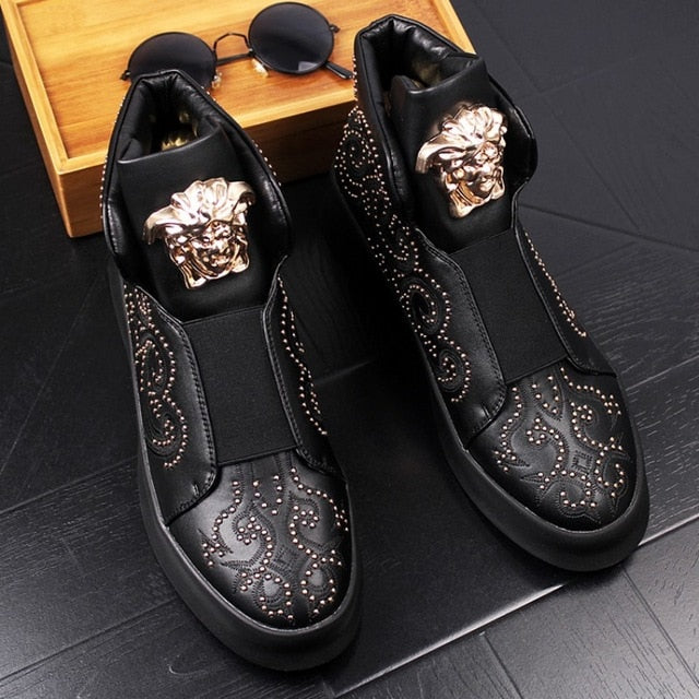 men shoe High quality leather loafers with thick and low rivets,casual board shoes,shoes with high height