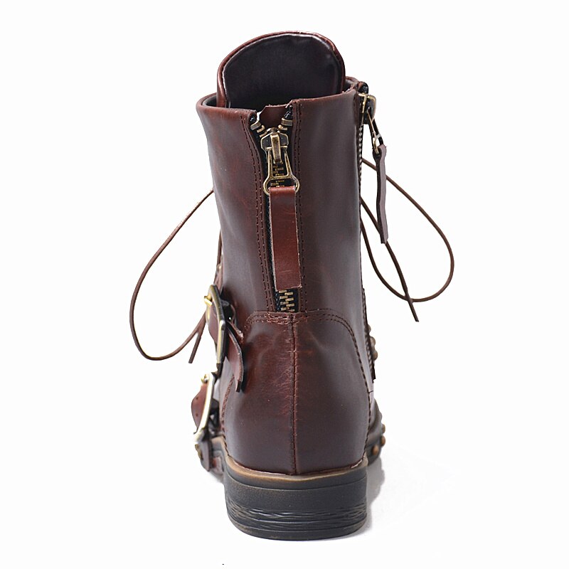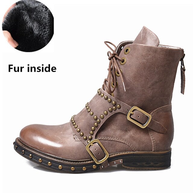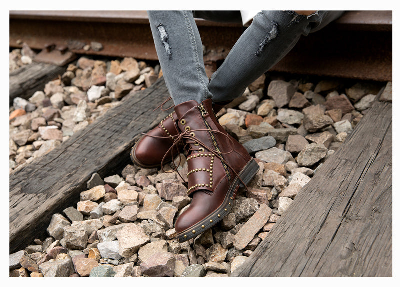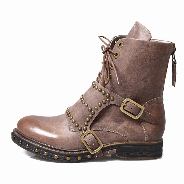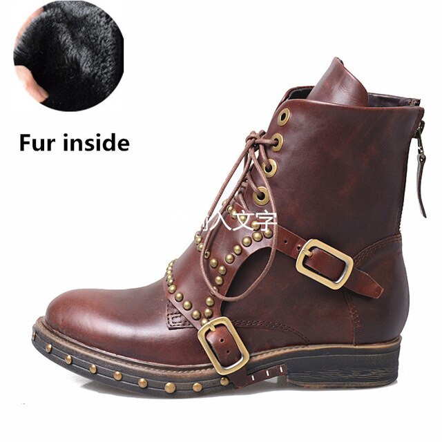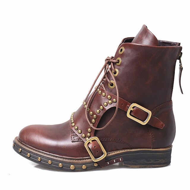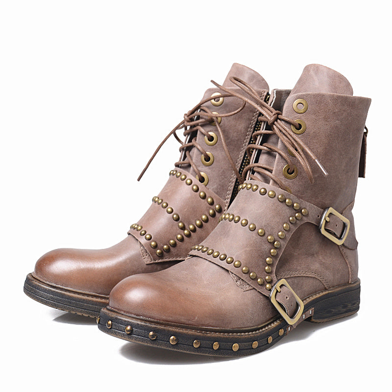 British Designer Women Ankle Boots Studded Winter Boot Shoes Woman Fashion Flats Ladies Boots Gladiator Lace Up Knight Botas