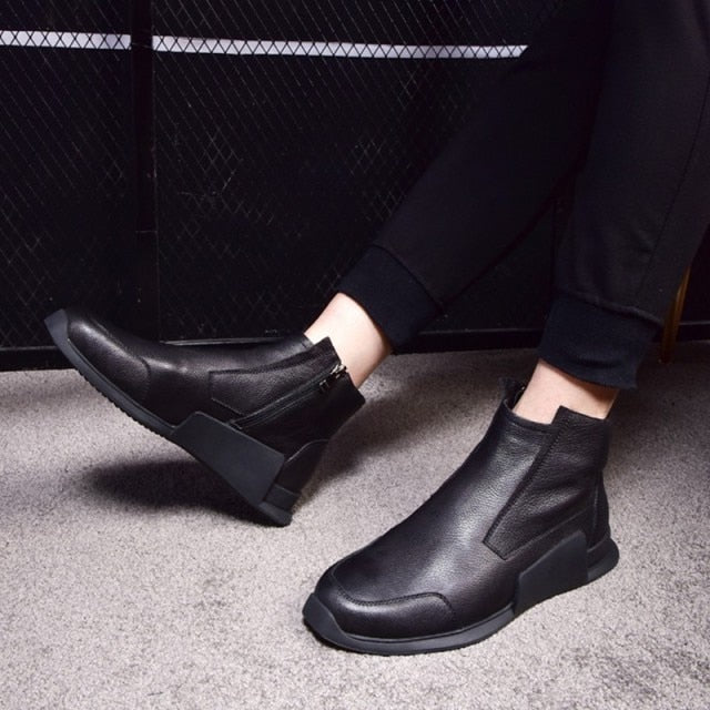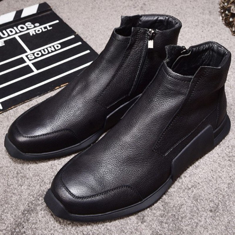 New Zip Round Toe Solid Male Casual Shoes Streetwear
