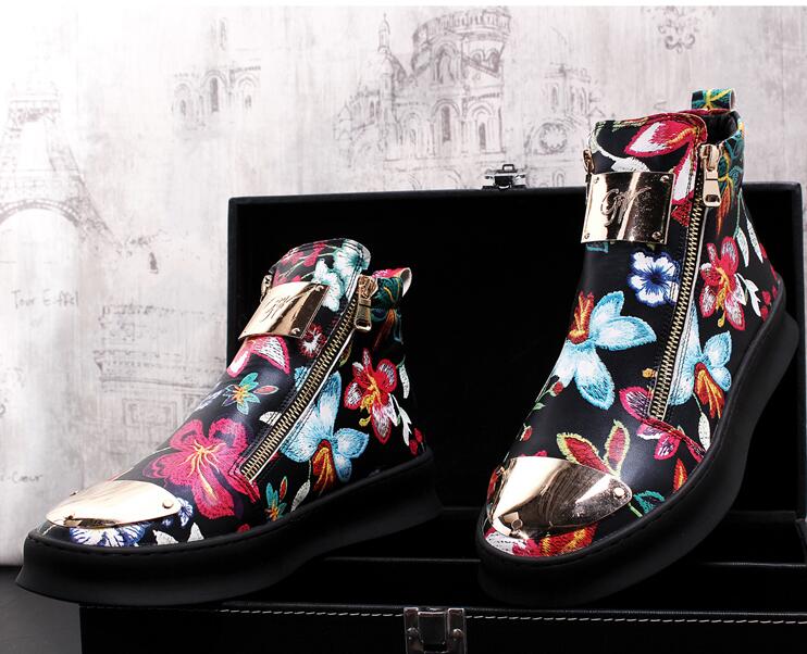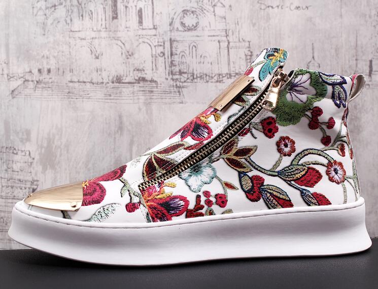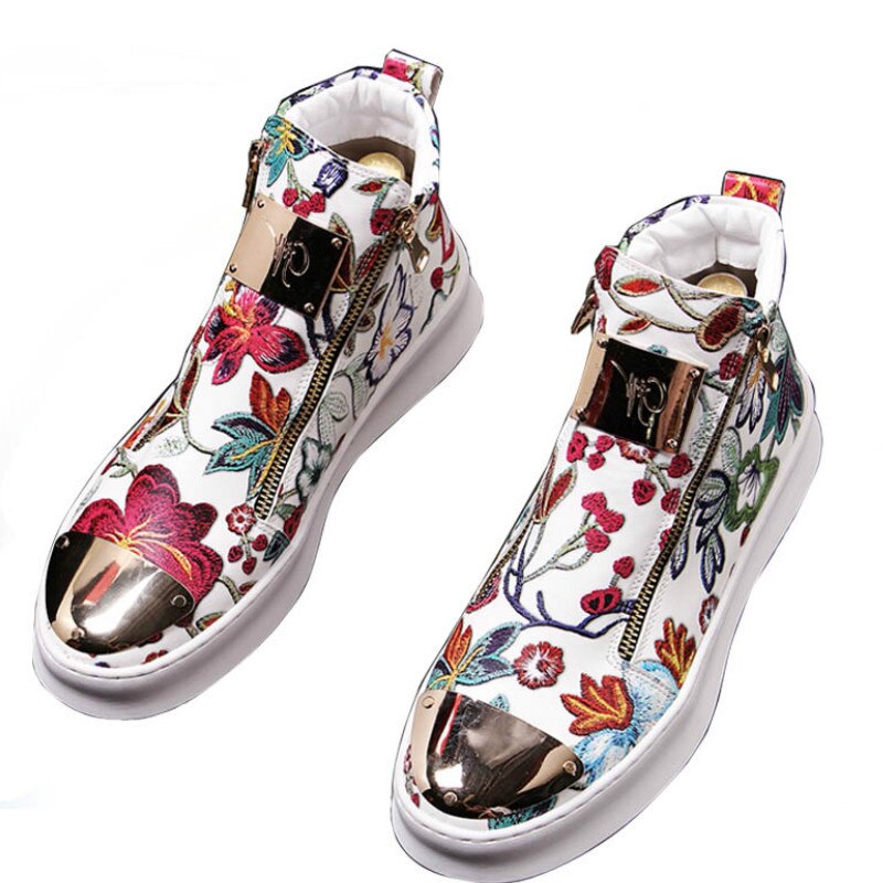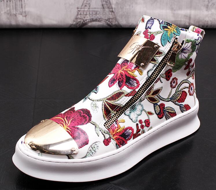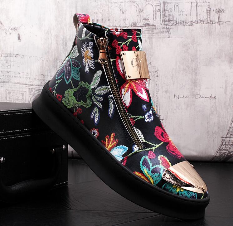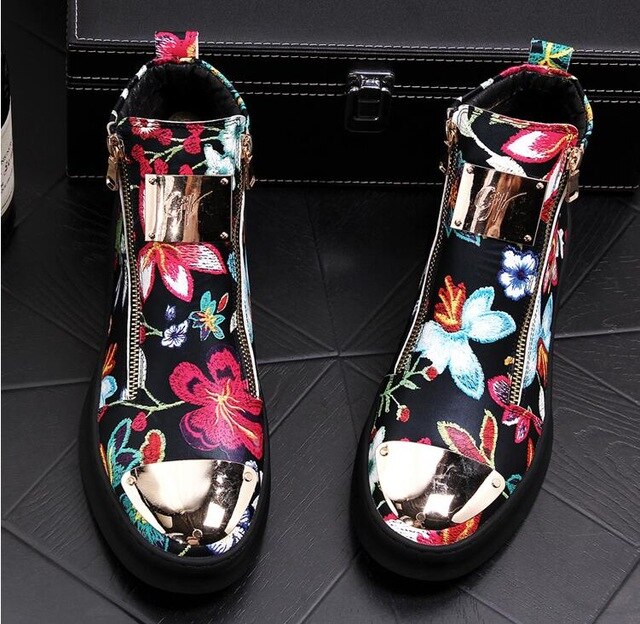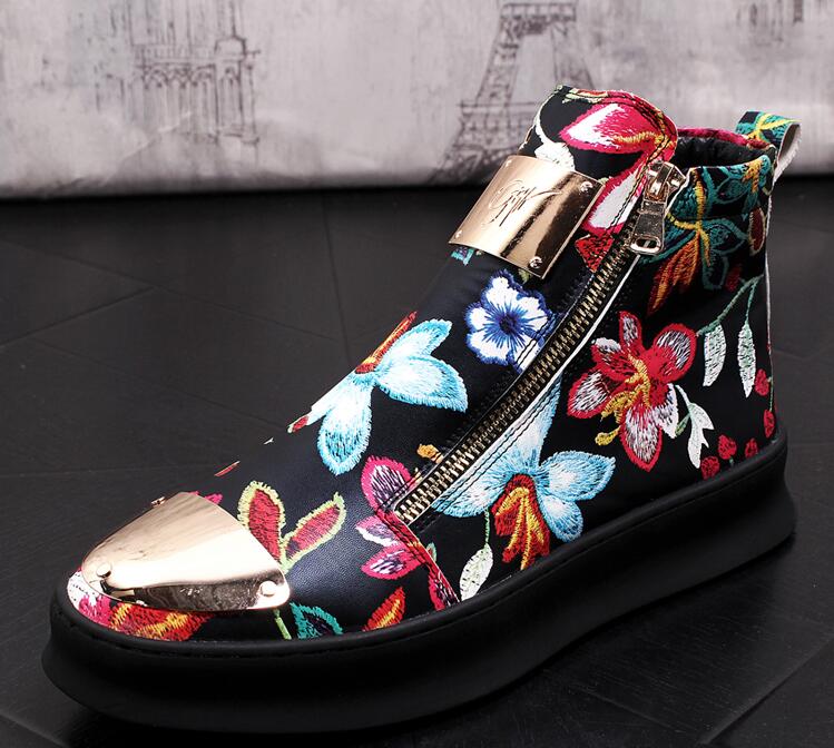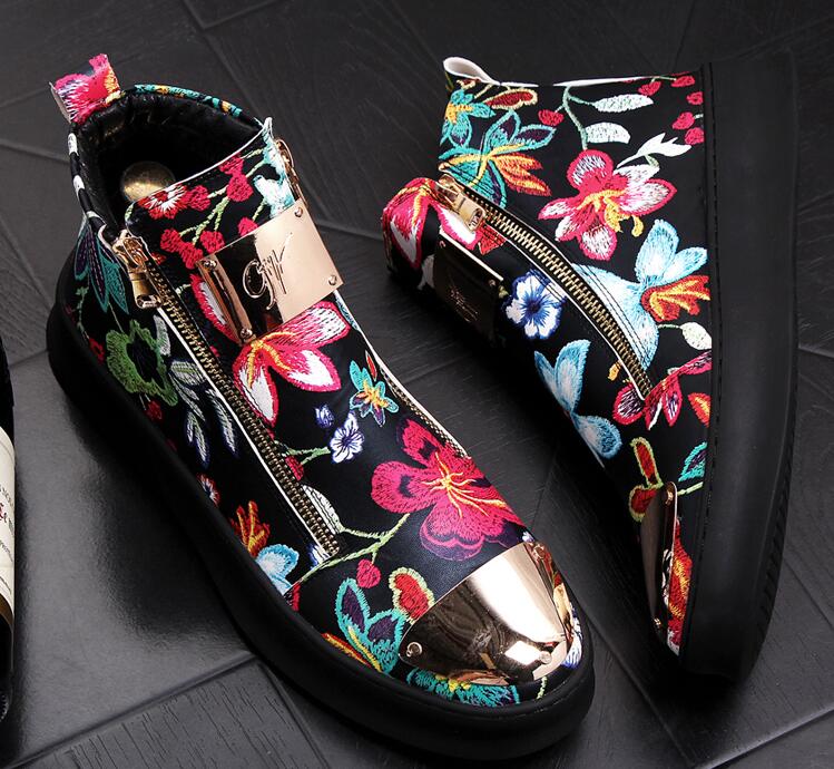 British Men Trendy flowers zipper Casual Flats high tops Shoes