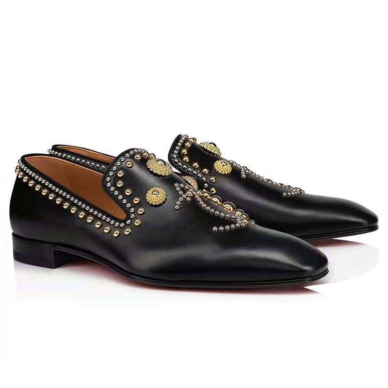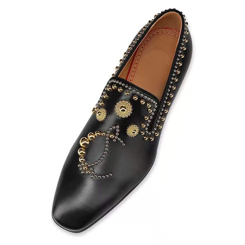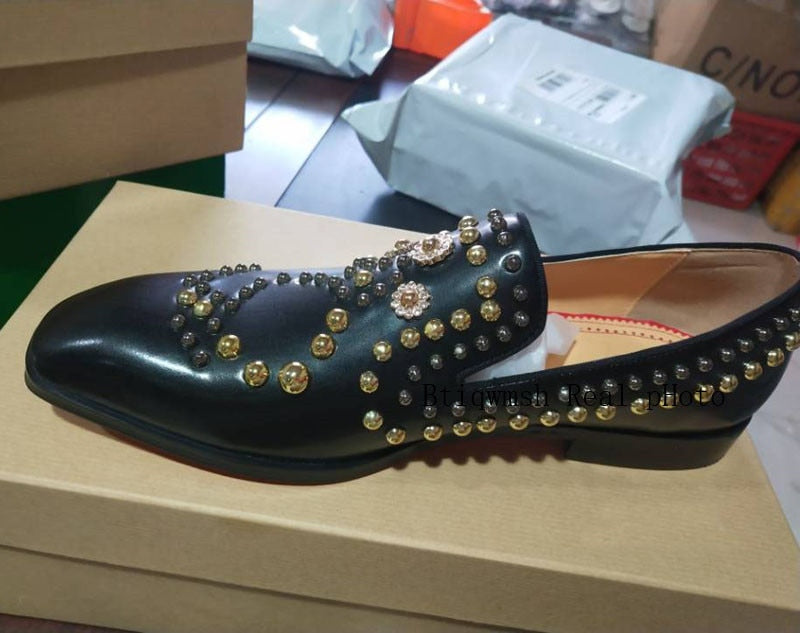 Pointed Toe Rhinestone Rivet Flat Shoes Male